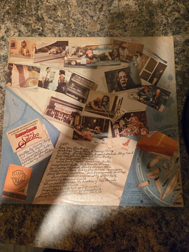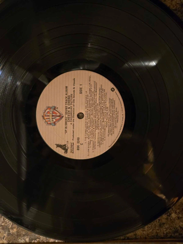 Relive the comedic genius of Cheech & Chong with this vintage 'Up In Smoke' vinyl record! This is the soundtrack album to their iconic movie. Though it has been enjoyed, it remains in good condition. The cover shows its age, but the vinyl is still ready for a good spin. Some details: * Artist: Cheech & Chong * Album: Up In Smoke (Original Motion Picture Soundtrack) * Format: Vinyl, LP * Genre: Comedy Rock Looking at similar listings, a good asking price for this record is $25. If this ad is still up, that means the record is still available!