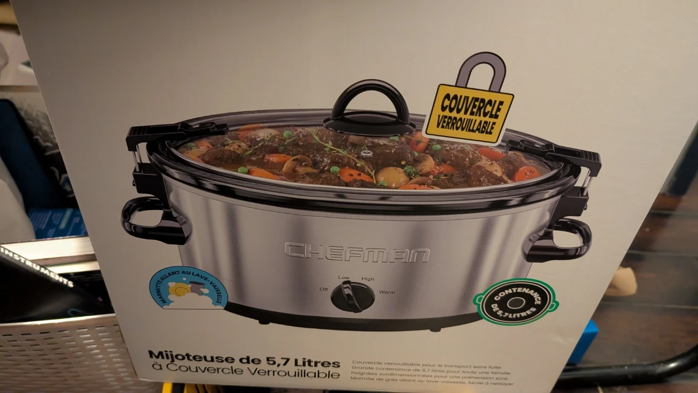 65PLEASE READ CAREFULLY: DOES NOT COME WITH THE INSERT. The insert got smashed. Selling a Chefman 5.7L slow cooker with a locking lid! It's perfect for making delicious meals with ease. The user guide is included, so you'll have all the safety and operating instructions you need. This slow cooker is in great shape and ready for a new home!