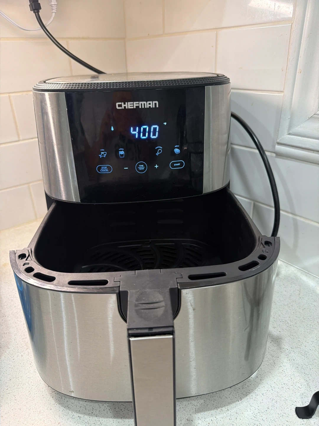 60Selling a Chefman air fryer in very good condition almost new . It's perfect for cooking your favourite foods quickly and easily. It features a digital display and preset cooking options. It's a great addition to any kitchen!