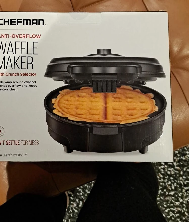 15Selling a Chefman anti-overflow waffle maker! It comes with a crunch selector and a wrap-around channel to catch overflow and keep counters clean