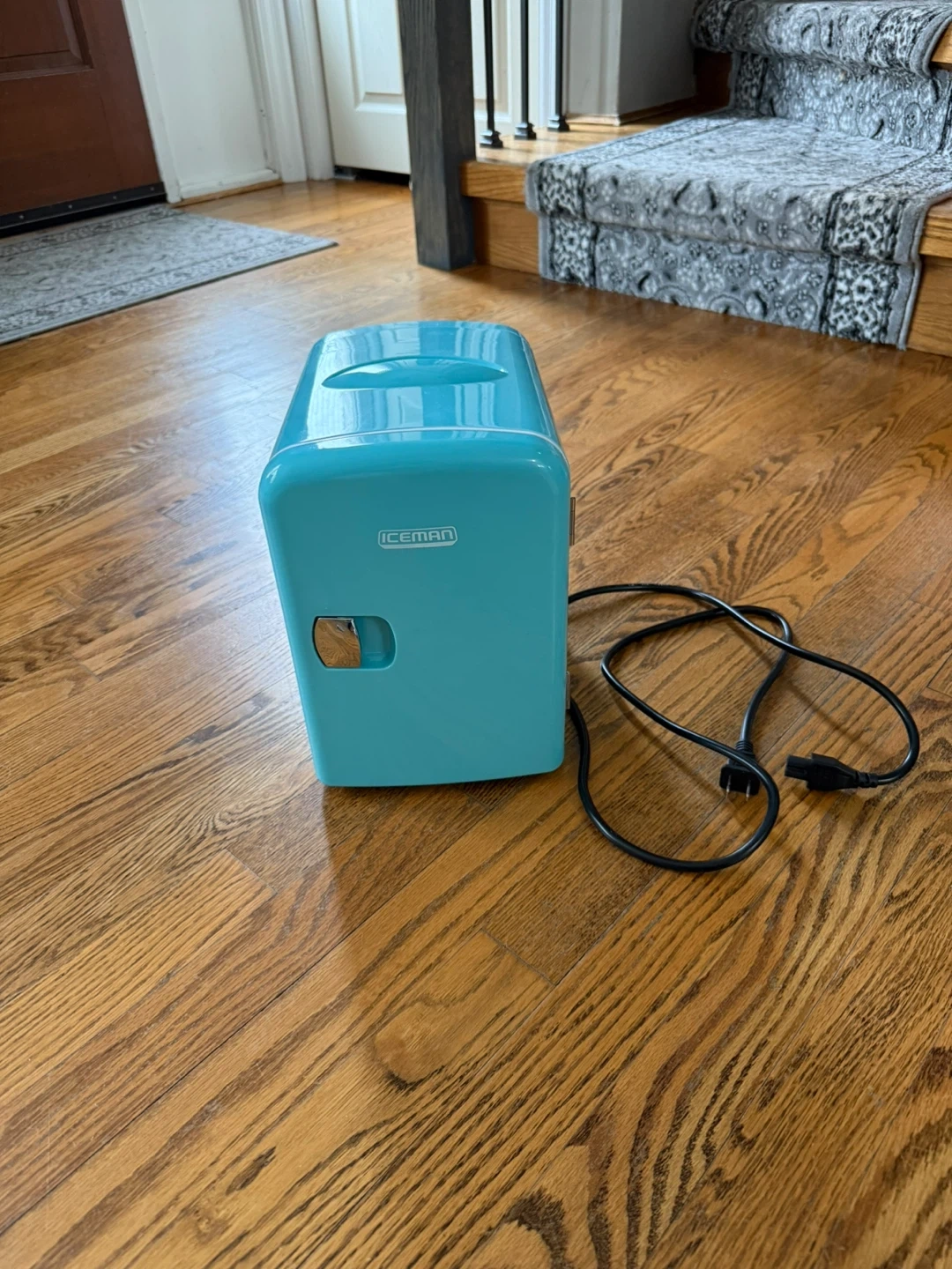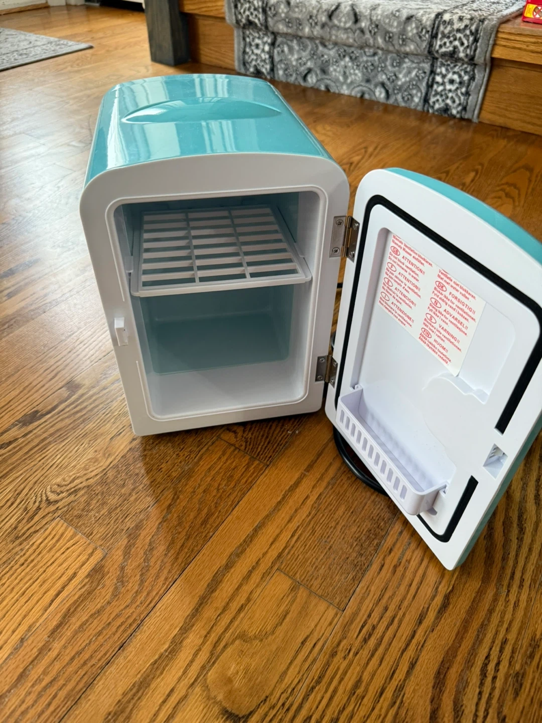 54 Liter/6 Can, Portable, Provides Compact Storage For Skincare, Snacks, Beverages and More, Cooler and Warmer Personal Fridge, Home/Car/Bedroom, Black. Used for 3 weeks. PRICE: $30, retail $57