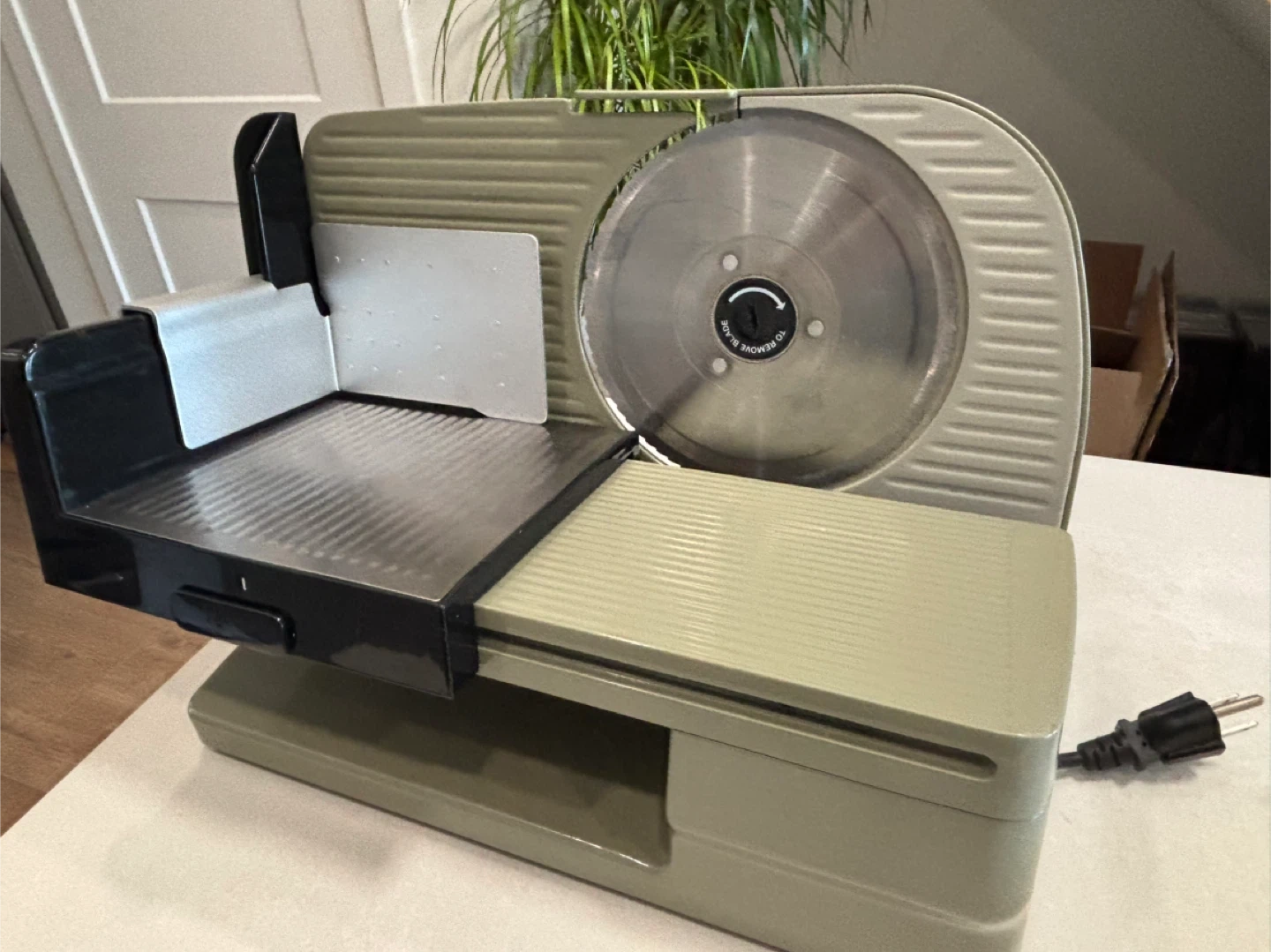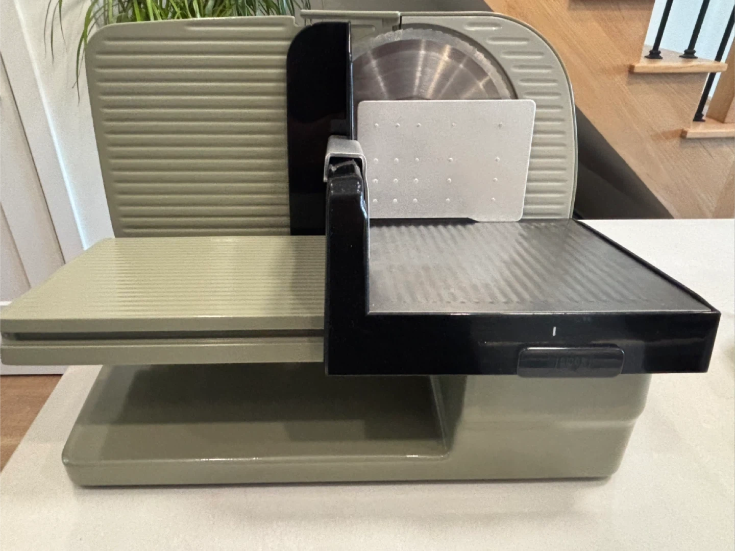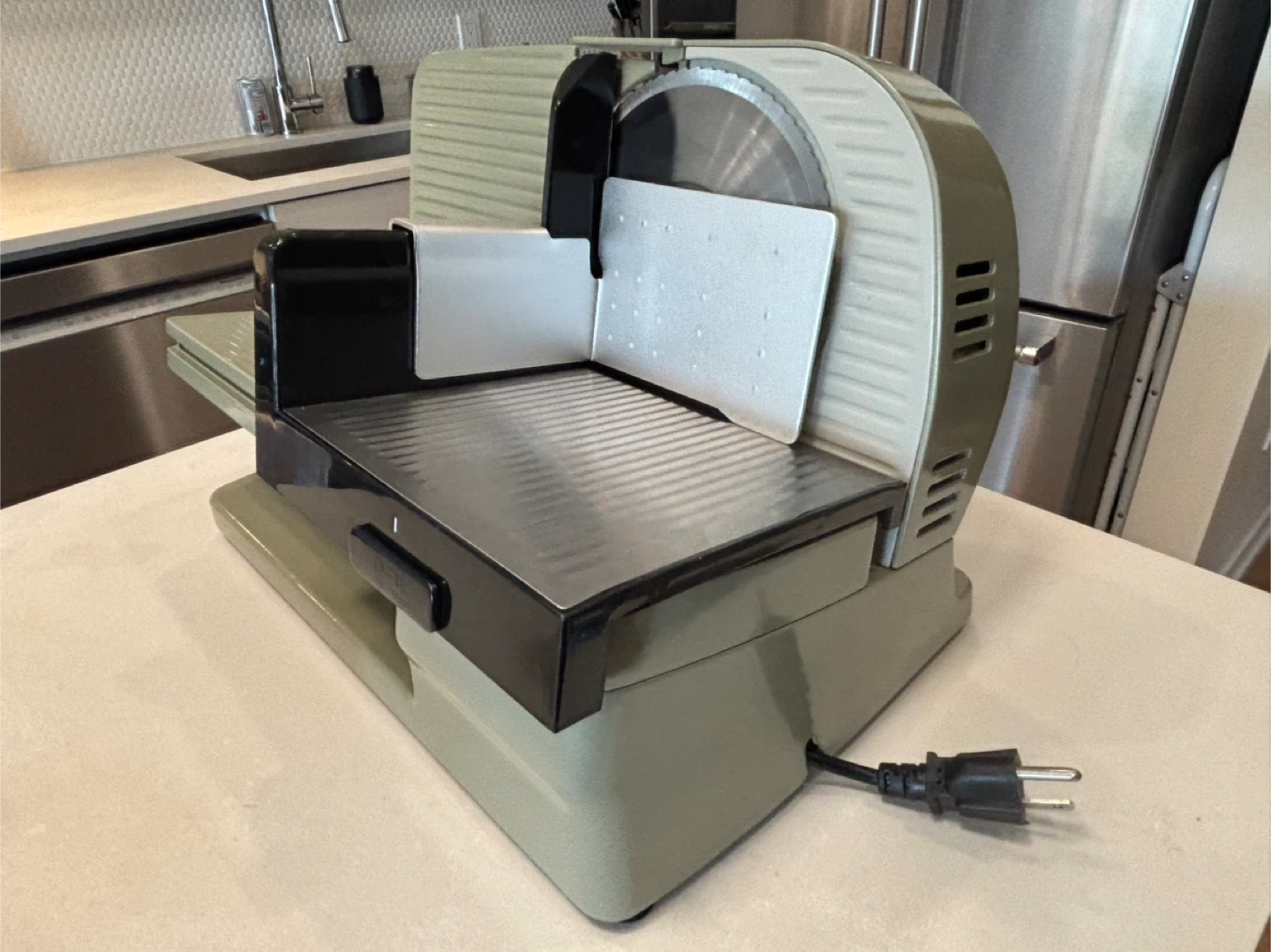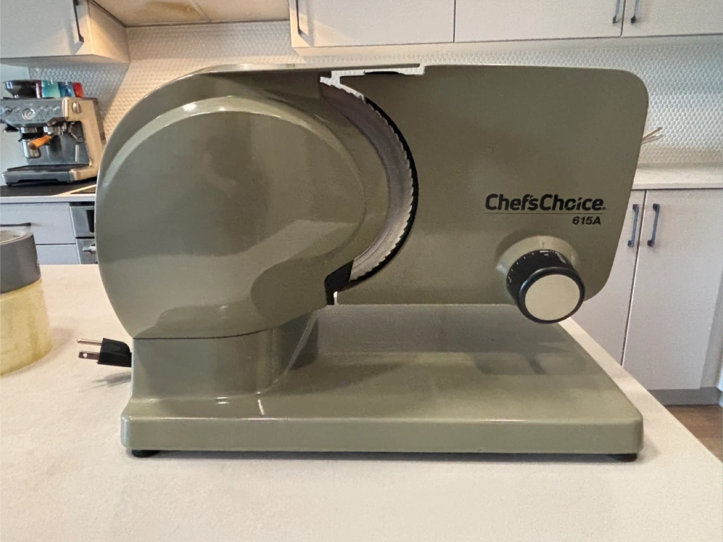 The Chef'sChoice Grey Model 615A Electric Food Slicer is the ideal solution for home chefs who want a cost-effective tool combined with accurate slicing. It's made of cast aluminum and stainless steel for a durable structure; additionally, it's equipped with a powerful high torque motor with gear drive for a reliable performance and continuous slicing operation. This electric food slicer has a cantilever design for large platters and simple cleaning while the multipurpose stainless steel blade offers cutting versatility. The blade, food carriage, food pusher, food deflector and thickness guide for effortless cleaning. Plus, operators can control slice thickness for versatility.