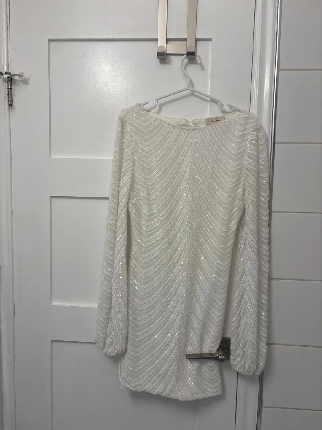 Here's a lovely white sequin dress from Chelsea 28. It's perfect for a night out or a special occasion! The dress is in great condition and ready for a new home