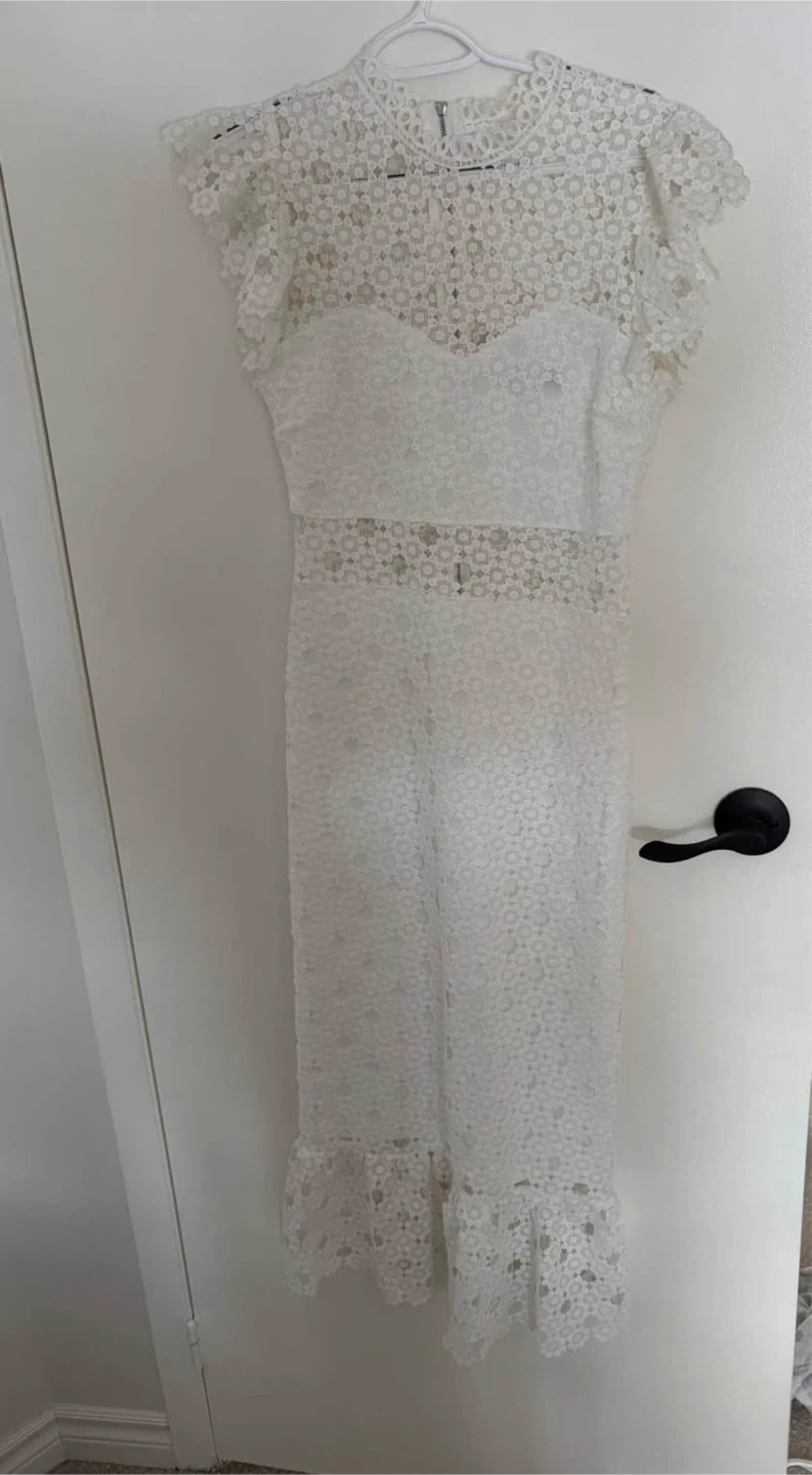 5Selling a beautiful Chelsea brand white lace dress in size XS. It's a stunning piece with intricate lace detailing, perfect for a special occasion. The dress features a flattering silhouette and a delicate, feminine design. It's in great condition and ready for a new home!