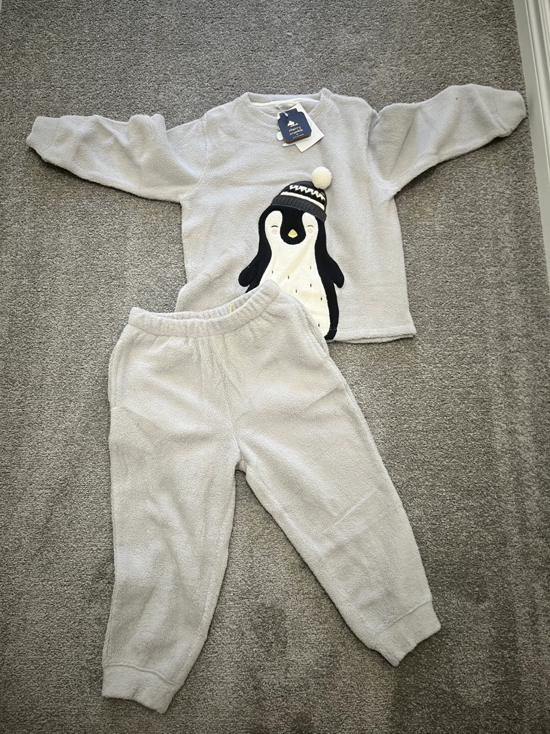 26Cute and cozy Cherry Crumble pajamas featuring an adorable penguin design! These are size 5Y, which fits kids aged 4-5 years. They're in great condition and ready for a new home!