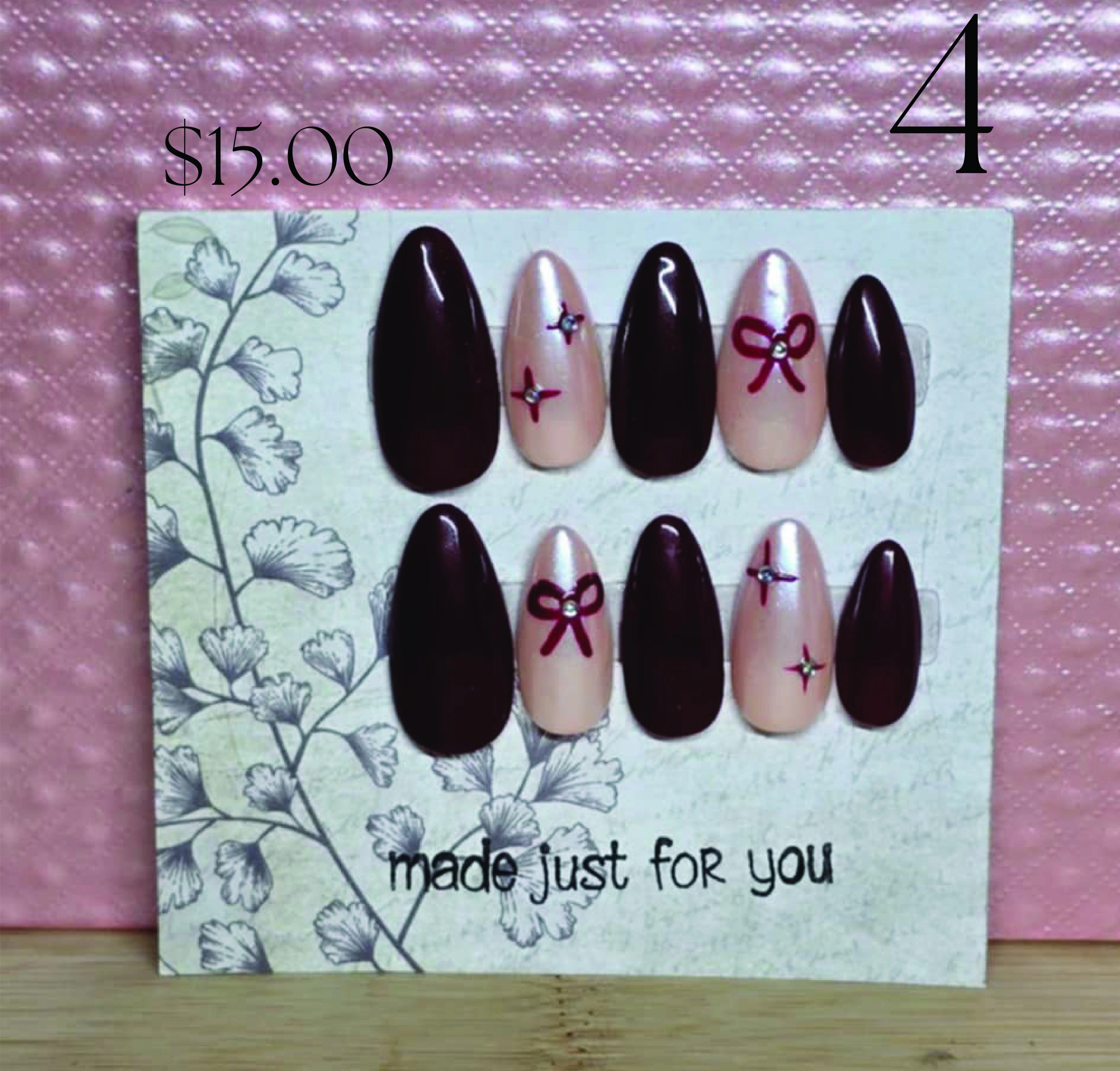15Add a touch of romantic elegance with these stunning deep cherry red press-on nails featuring adorable nude accent nails with delicate red bow and star details. The rich, glossy burgundy-red pairs beautifully with soft nude tones, creating a sweet yet sophisticated look. Medium - 1-6-4-5-8 Every set comes with a prep package including : ● Nail Glue ● Alcohol Wipe ● Wooden Stick ● Nail Adhesive Tab ● Nail File ● Instruction Card DM me if you want a custom set or have questions!