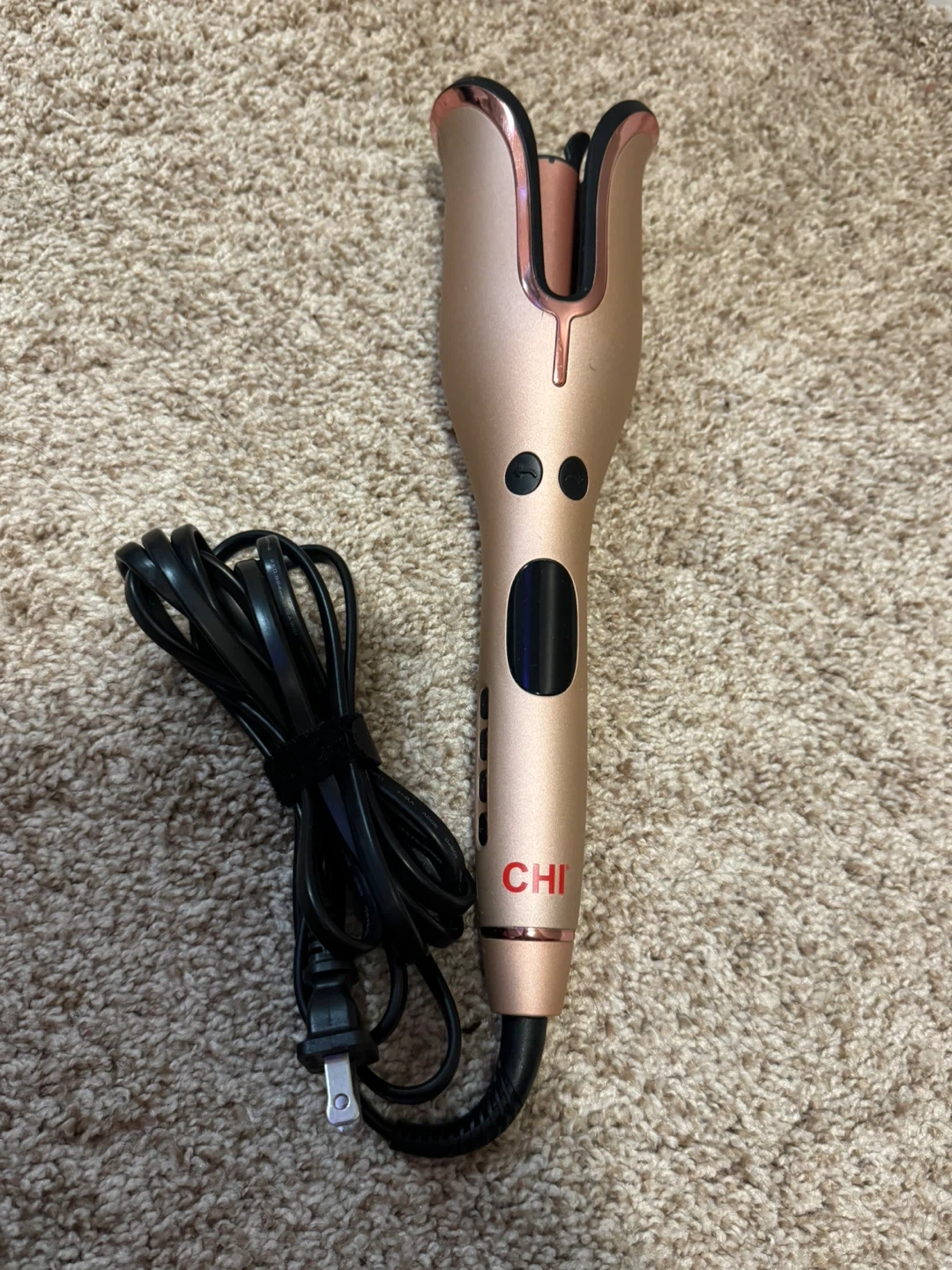 70Get effortless curls with this CHI Spin N Curl! It features a ceramic rotating barrel that creates beautiful, shiny curls at the touch of a button. It's in great condition and ready for a new home
