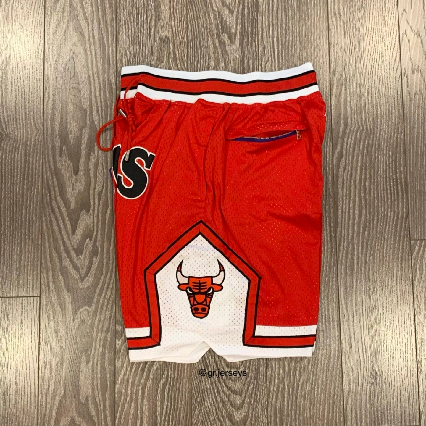 Selling a pair of Chicago Bulls Just Don shorts. These shorts are red with white accents and feature the Bulls logo. Great for any fan!