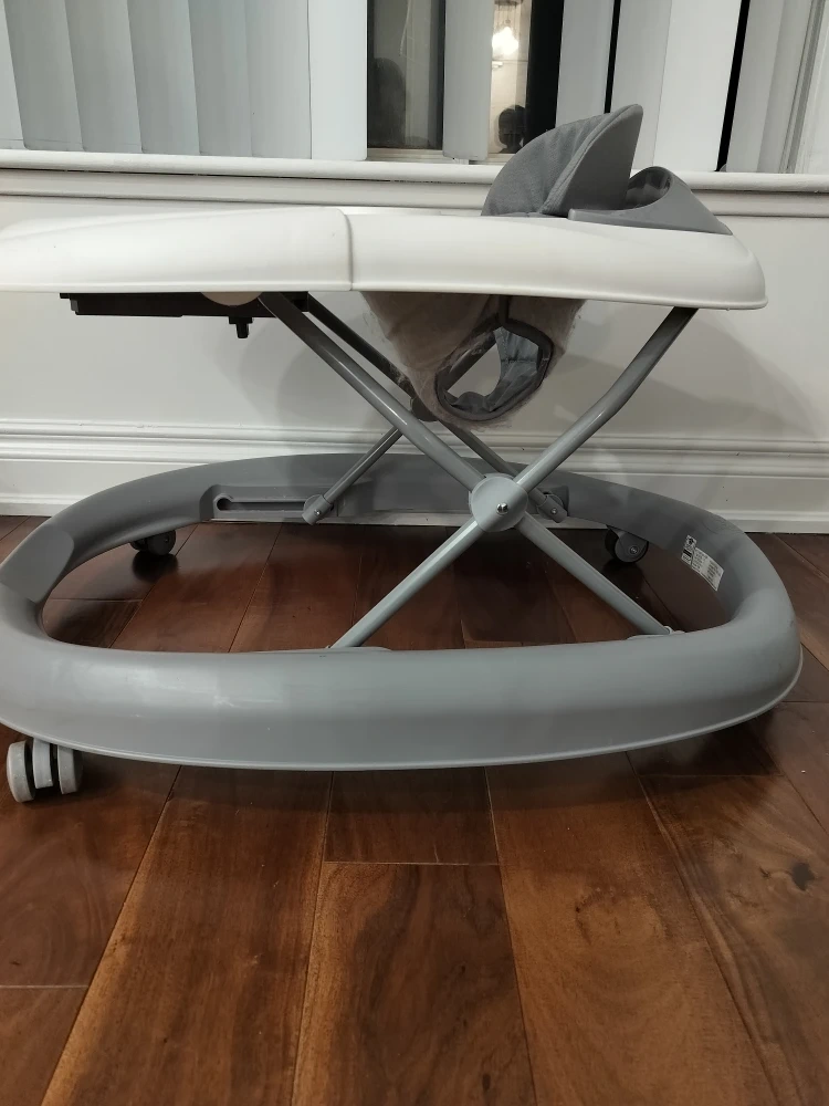 84Selling a Chicco baby walker in great condition! It's a mix of grey and white, perfect for helping your little one take their first steps. It has a padded seat(washable) and a wide base for stability. Pickup please.