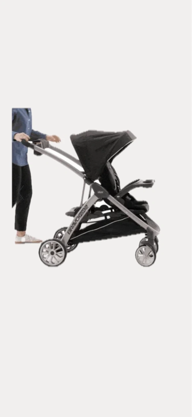 Selling a Chicco BravoFor2 LE double stroller! It's in great condition and ready for your little ones. The BravoFor2 is designed for older children who want to ride along, either standing or sitting on the rear seat. It's a versatile and convenient stroller for families with young kids