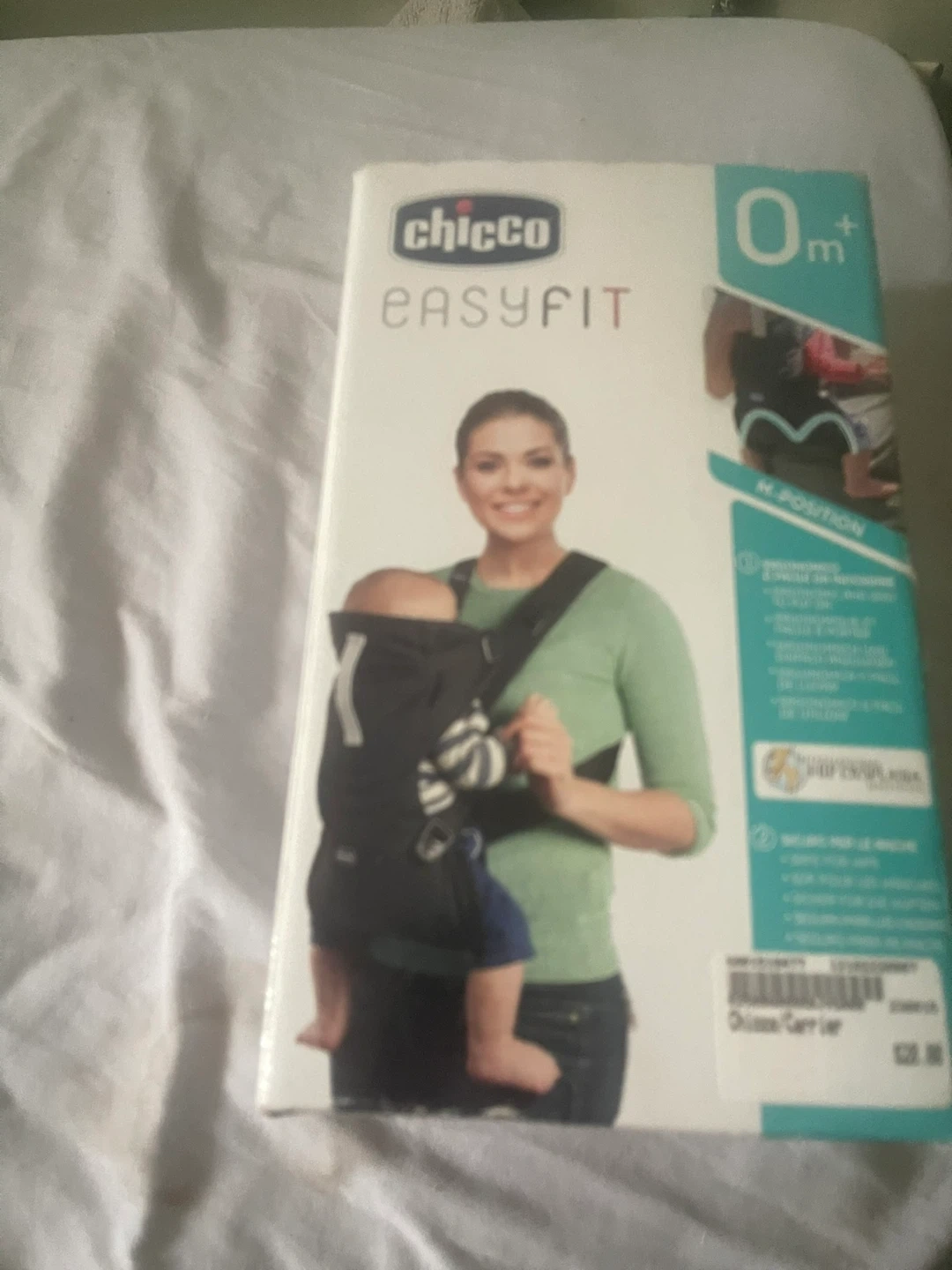 33Selling a Chicco Easyfit baby carrier in black! It's in great condition and ready for a new little one. Suitable from 0 months and up, it's designed to be ergonomic and easy to adjust as your baby grows. This carrier is simple to wear like a t-shirt!