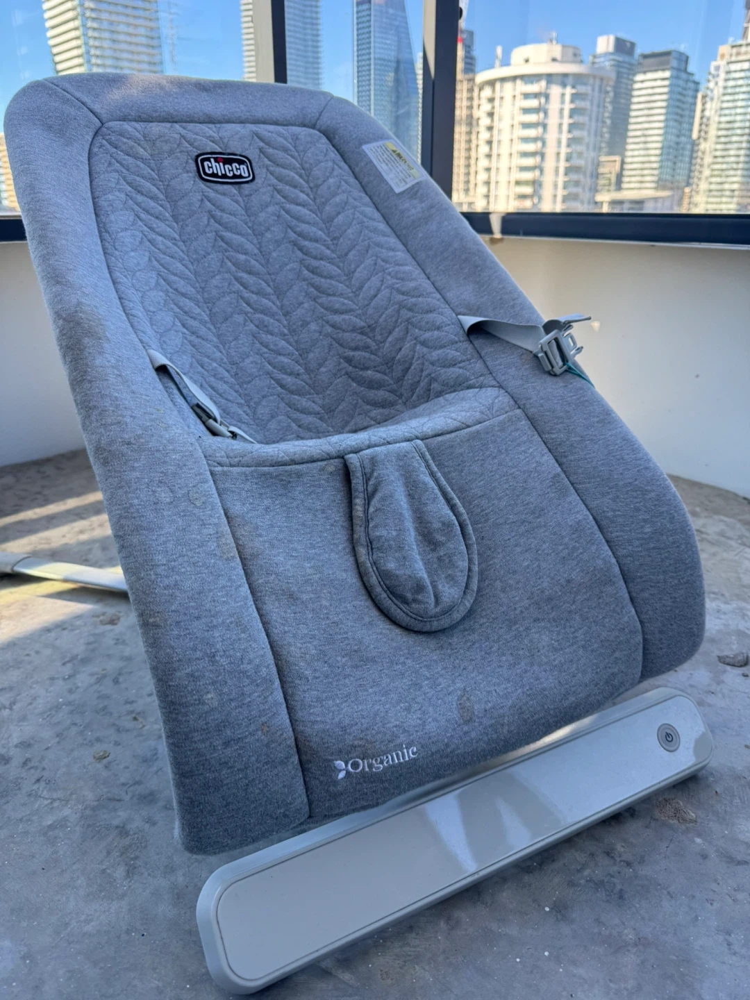 60Selling a Chicco baby bouncer in great condition! It's a cozy and safe spot for your little one. The bouncer features a soft, organic fabric and a gentle bouncing motion to help soothe and entertain your baby. Perfect for newborns and up!