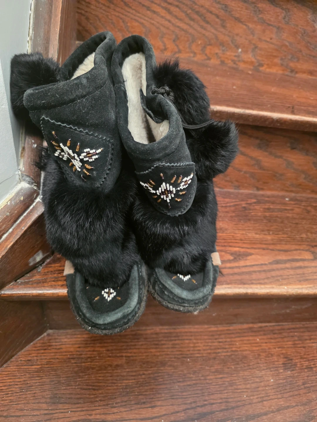 14These Chief lieutenant boots in great condition and ready for a new home! They're black suede boots with fur trim and beaded detailing, perfect for keeping your feet warm and stylish during the colder months. They have a really unique look! Reg price 350 plus taxx Selling for $150 Your gain my loss Pick up only Woodbridge Price not negotiable