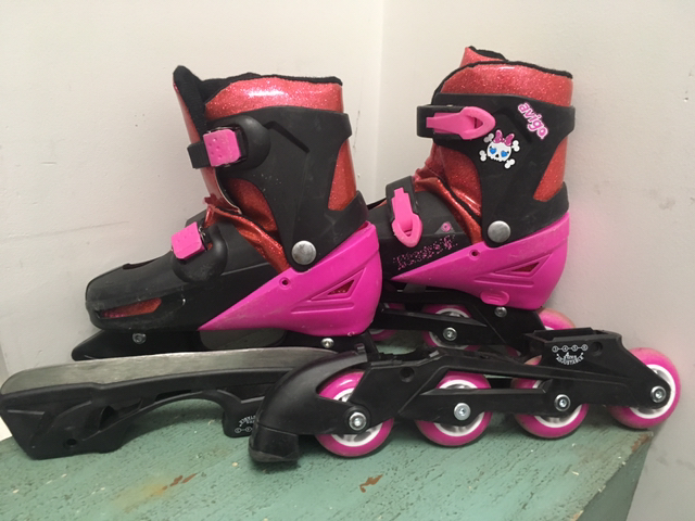 47These are child (girls ) skates with changeable blades to rollers not sure of exact size
