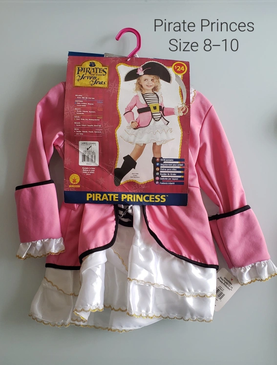 Children's Hallowe'en costumes. Etransfer to hold. PU in Oakville. Dundas and Neyagawa. 1. Disney Cinderella, size in EUC, comes with wig $30 2. Disney Merida from Brave in EUC includes bow and arrow and wig $30 3. Mary from Hocus Pocus BNWT size 10-12 $10 4. Lizzy Hearts from Ever After High size 5-7, $12 5. Disney's Jake and the Neverland Pirates, BNWT, 3T-4T, $12 6. Pirates of the Seven Seas, BNWT, fits 8-10, $10 7. Supergirl, size 5-7 in EUC $15 8. Barbie Bride, size M in EUC, $12