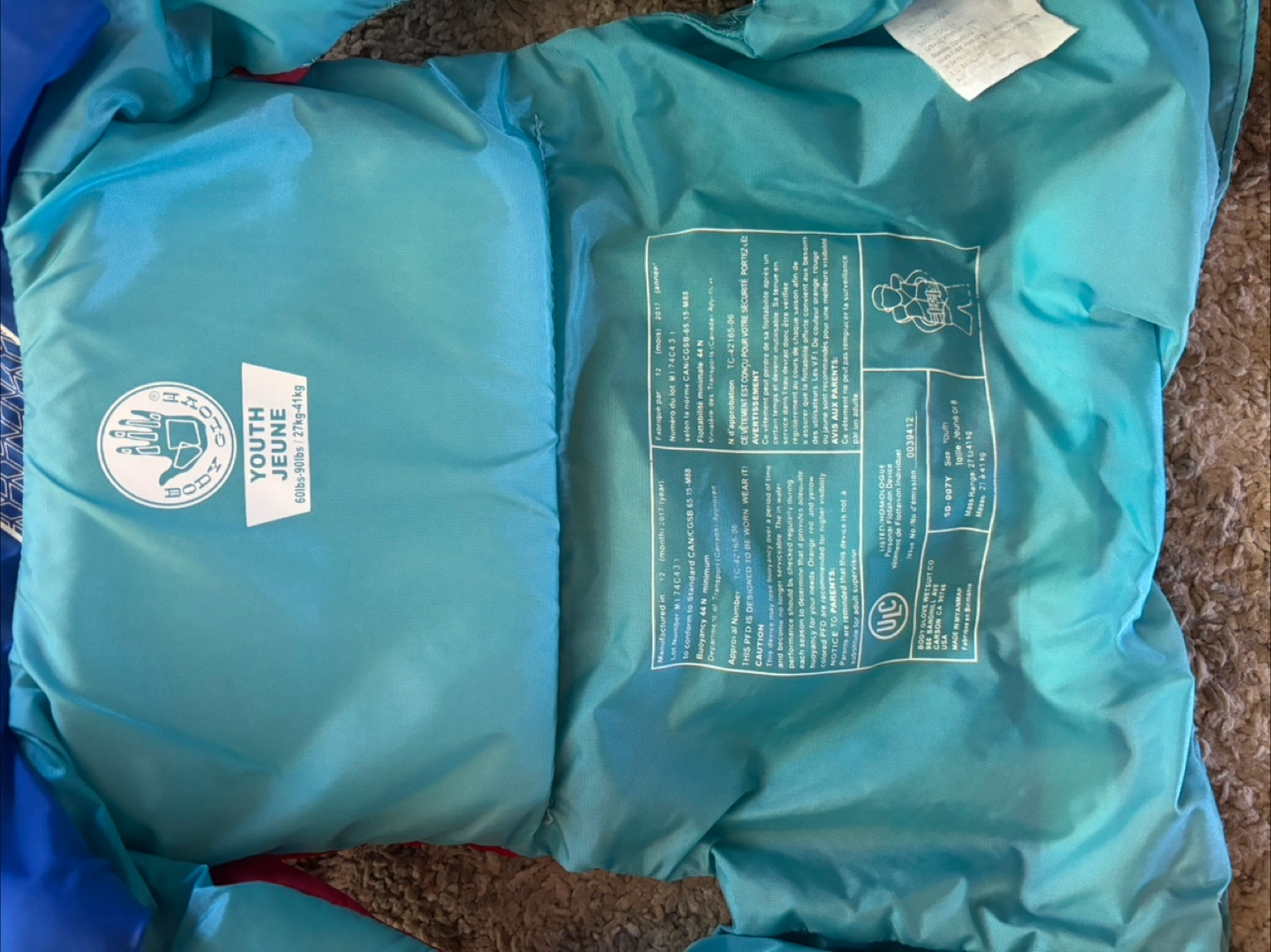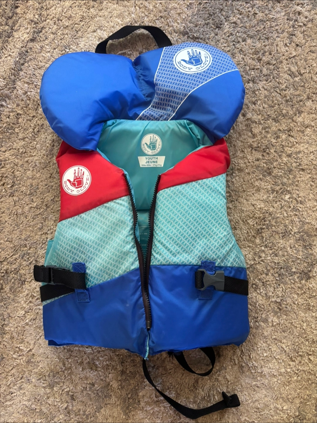 Selling a youth life jacket. It's in great condition. - Youth size, suitable for 30-50 lbs (27kg-45kg)