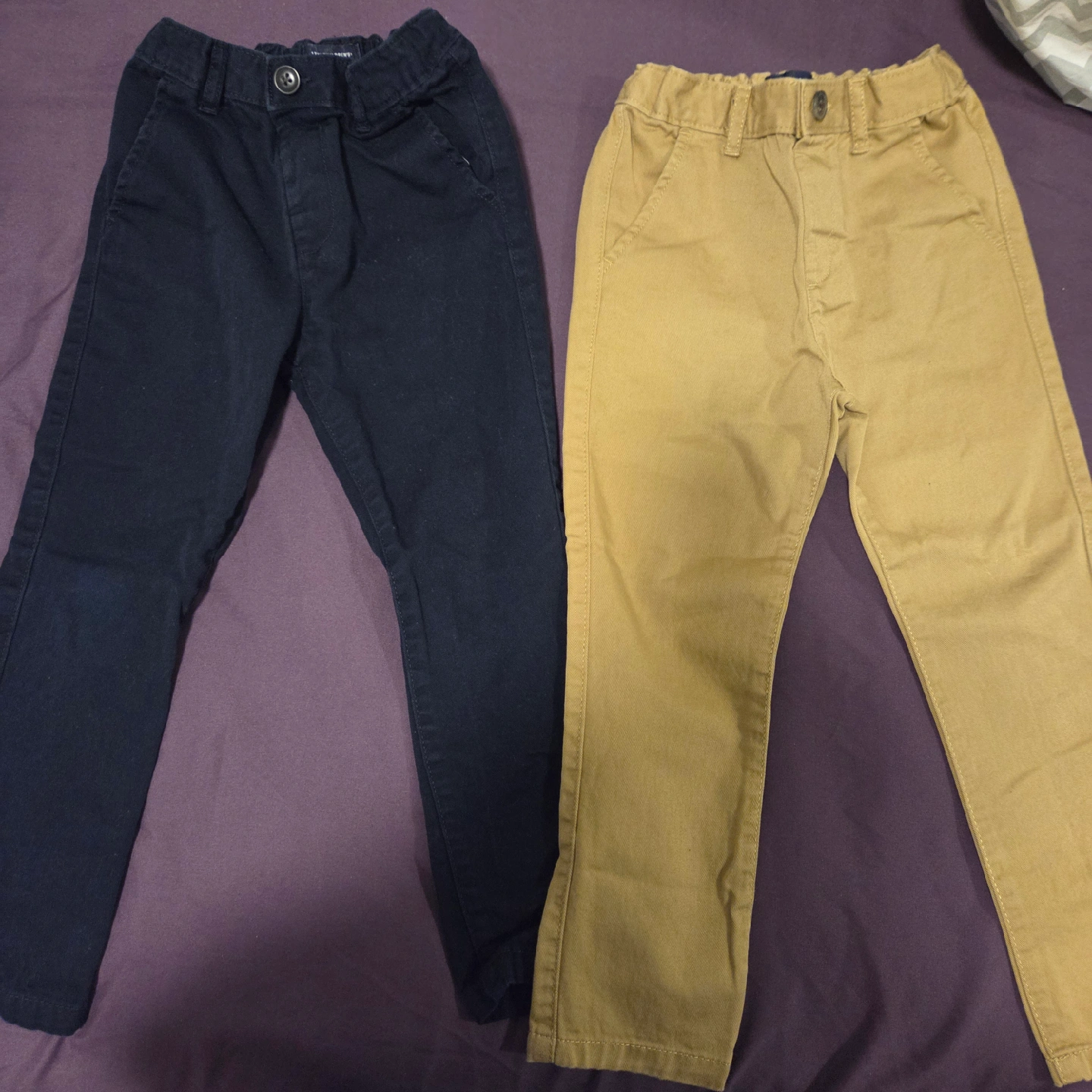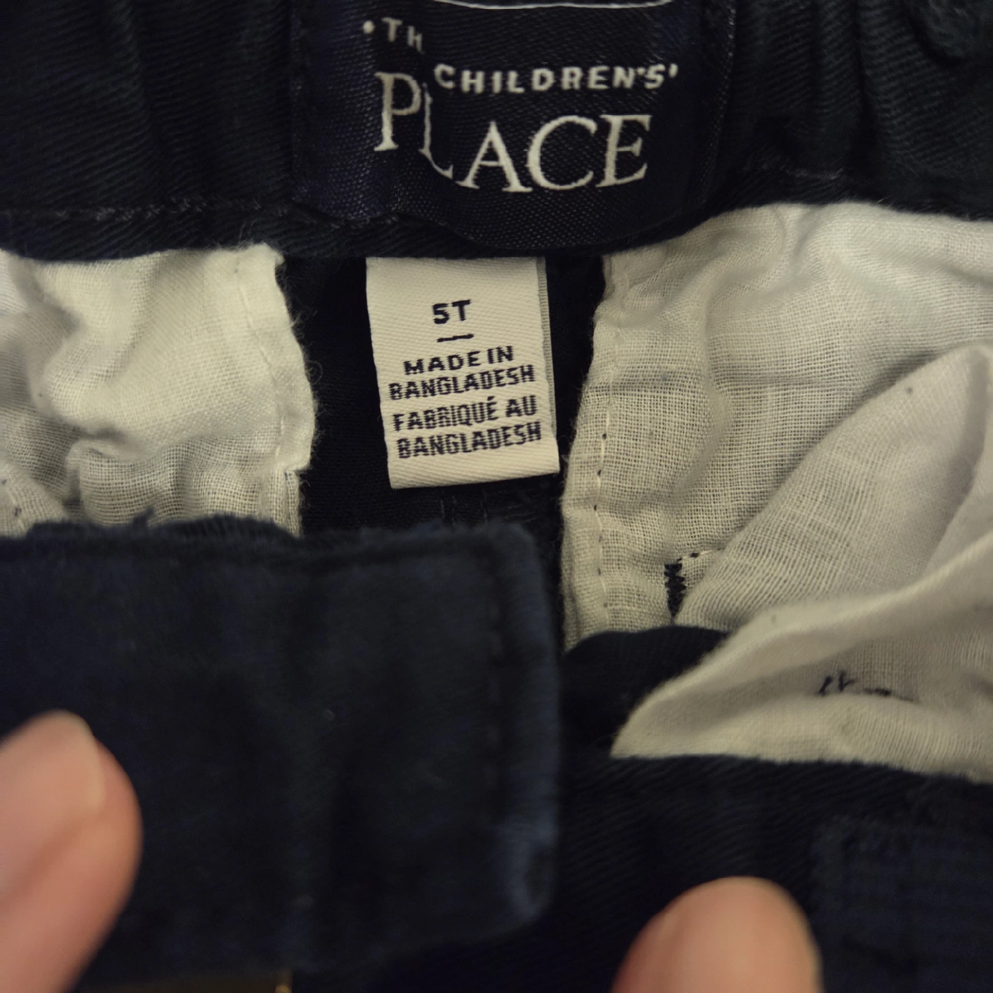 Selling a pair of Children's Place pants in size 5T. One pair is navy blue and the other is khaki. Selling for single family