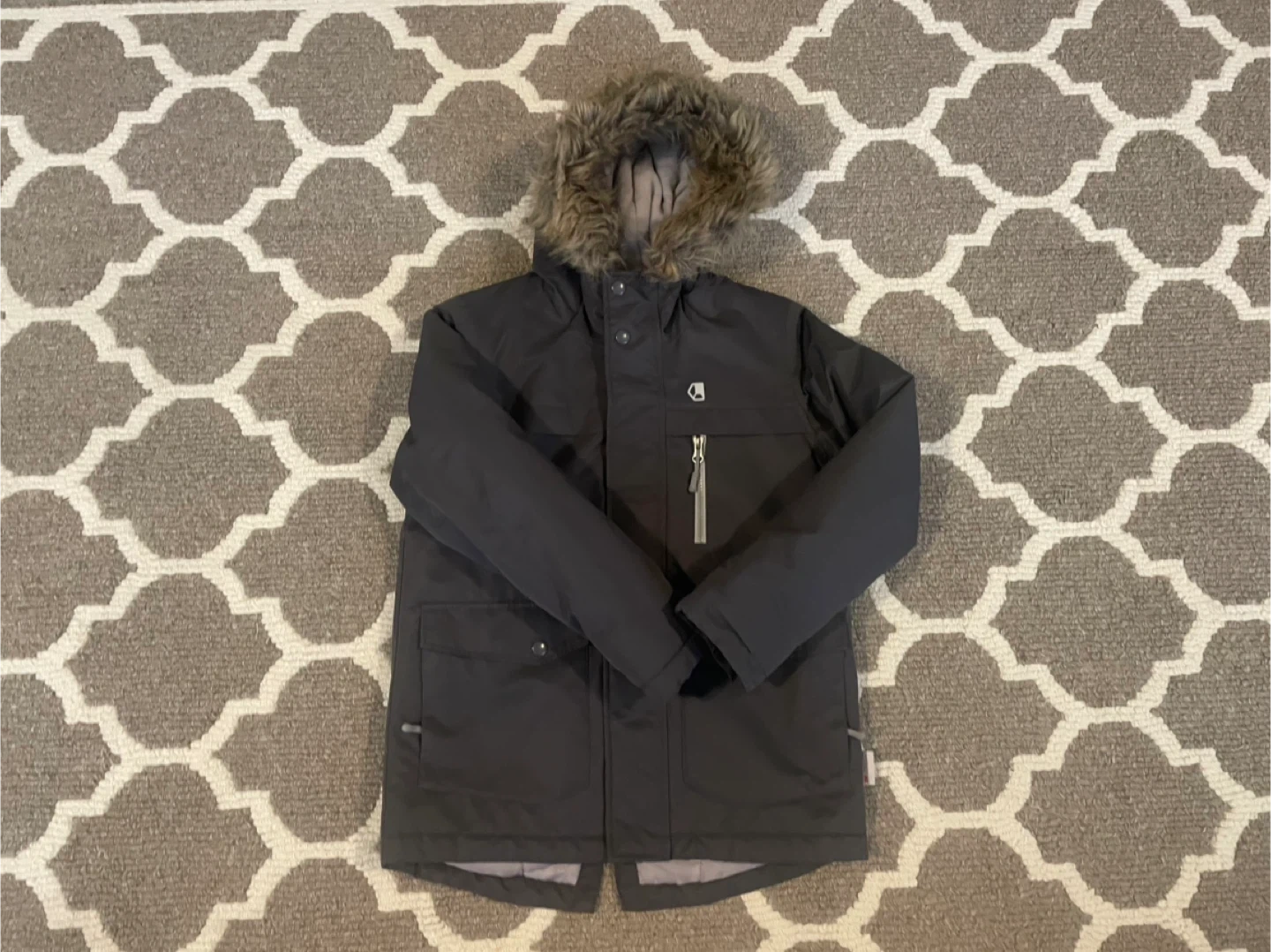 A cozy winter jacket from The Children's Place in size 10-12. It's in great condition and ready to keep your little one warm this winter. Features a faux fur trim on the hood and plenty of pockets for all their treasures. Barely worn