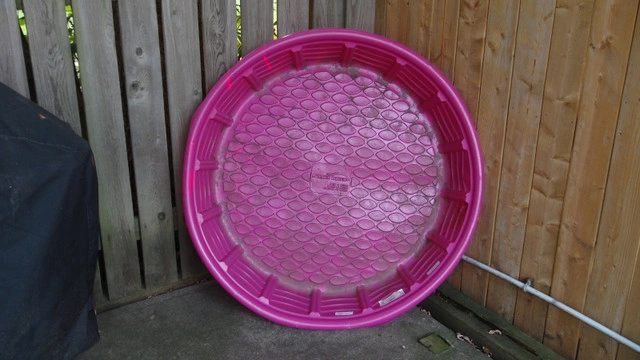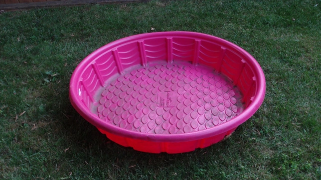 Child's wading pool as seen in the photos. Hardly used but has residual dirt. 43.5 inches in diameter and 8 inches deep to the very top.