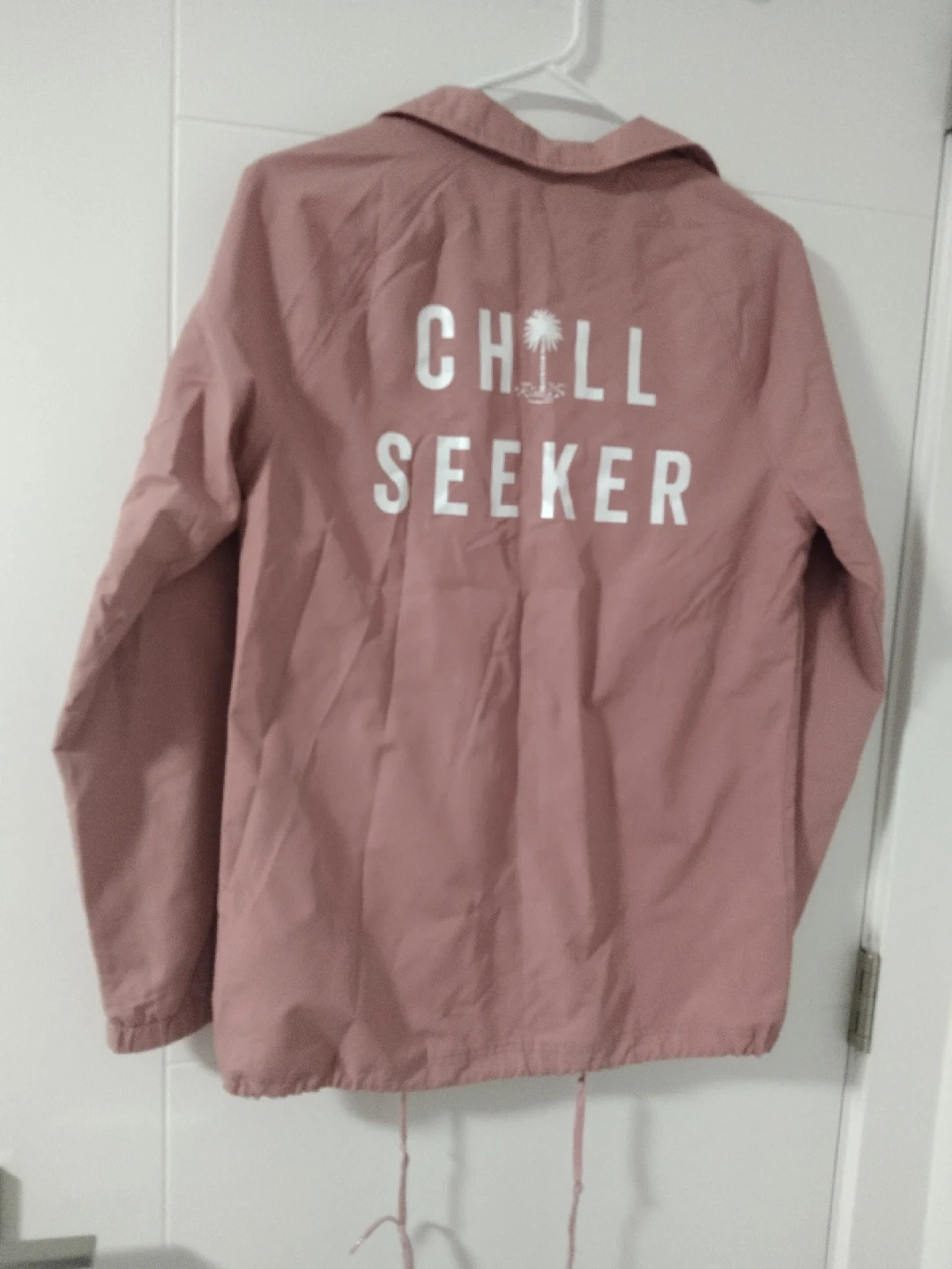 142Selling a cute Chill Seeker jacket in a lovely pink colour! The jacket has a fun design on the back that says 'CHILL SEEKER'. It's in great condition and perfect for layering. A stylish and comfortable addition to your wardrobe. open to offers
