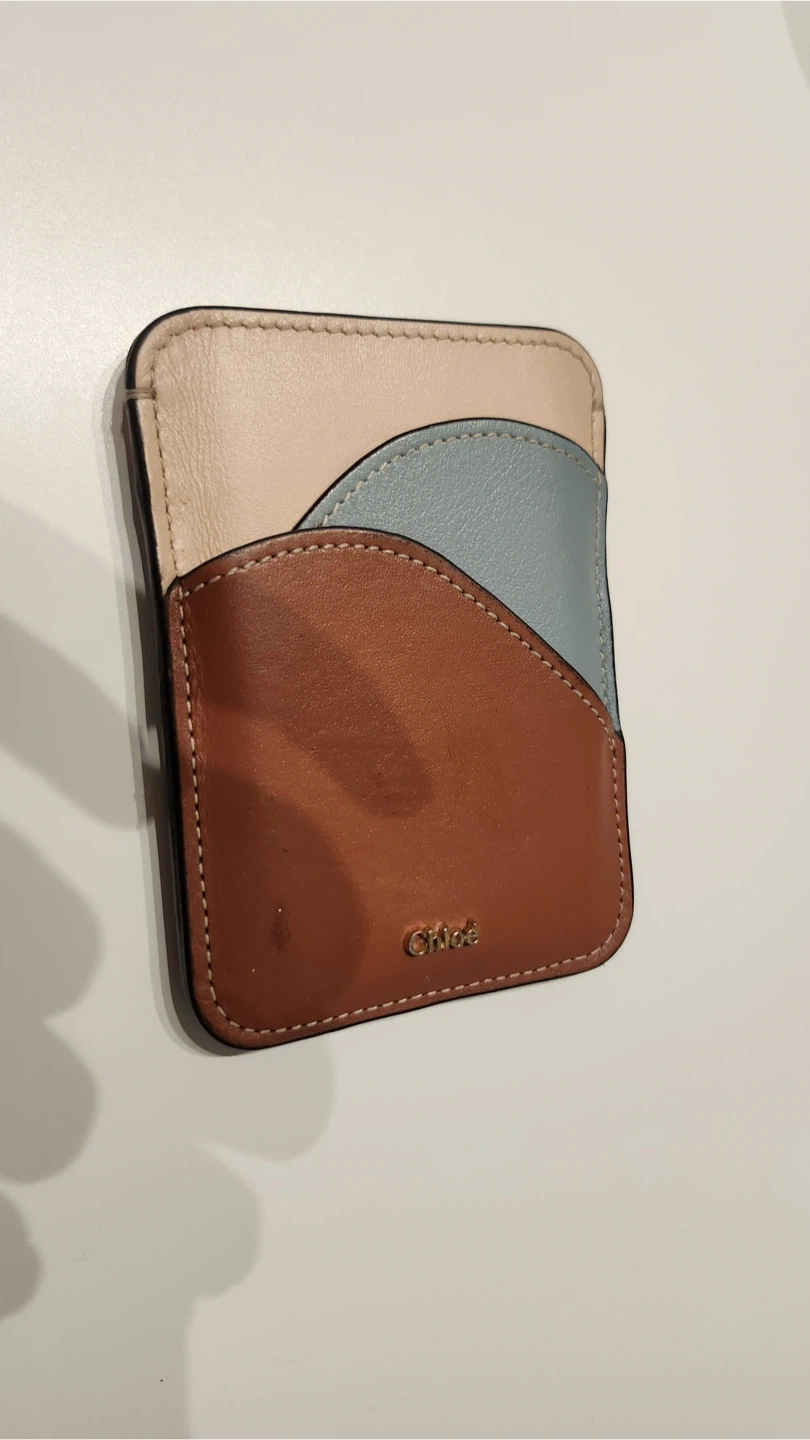 10Selling a cute Chloé card holder in excellent condition! It features a stylish colour-blocked design with brown, light blue, and cream panels. Perfect for keeping your essential cards organized in style