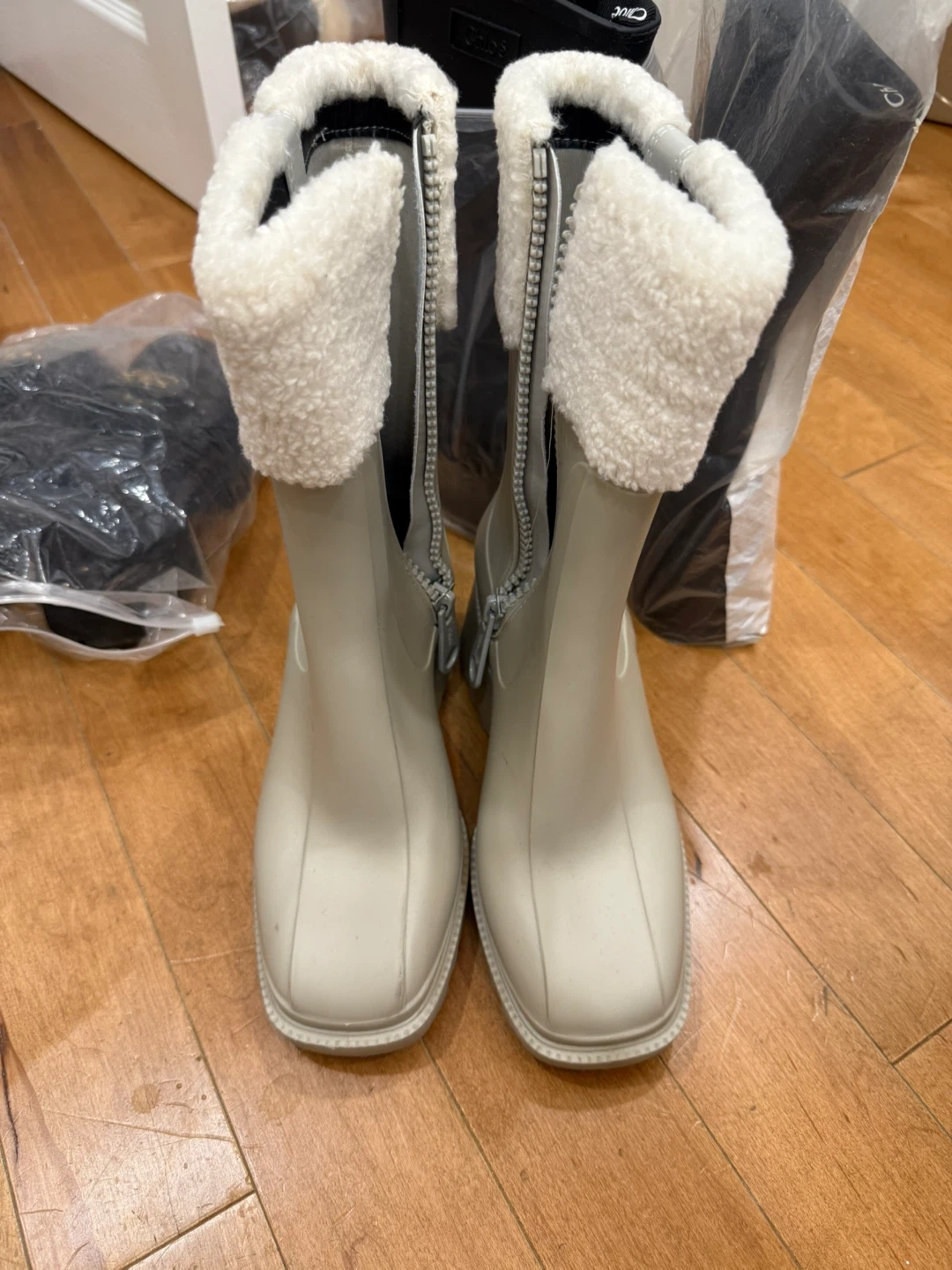 25Selling a pair of Chloé women's rain boots in a lovely grey colour! They are a US size 7 and feature a cozy, furry lining around the top. Perfect for those rainy days!