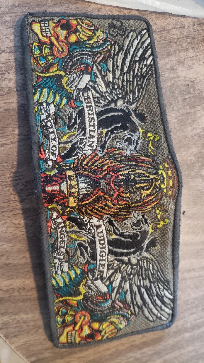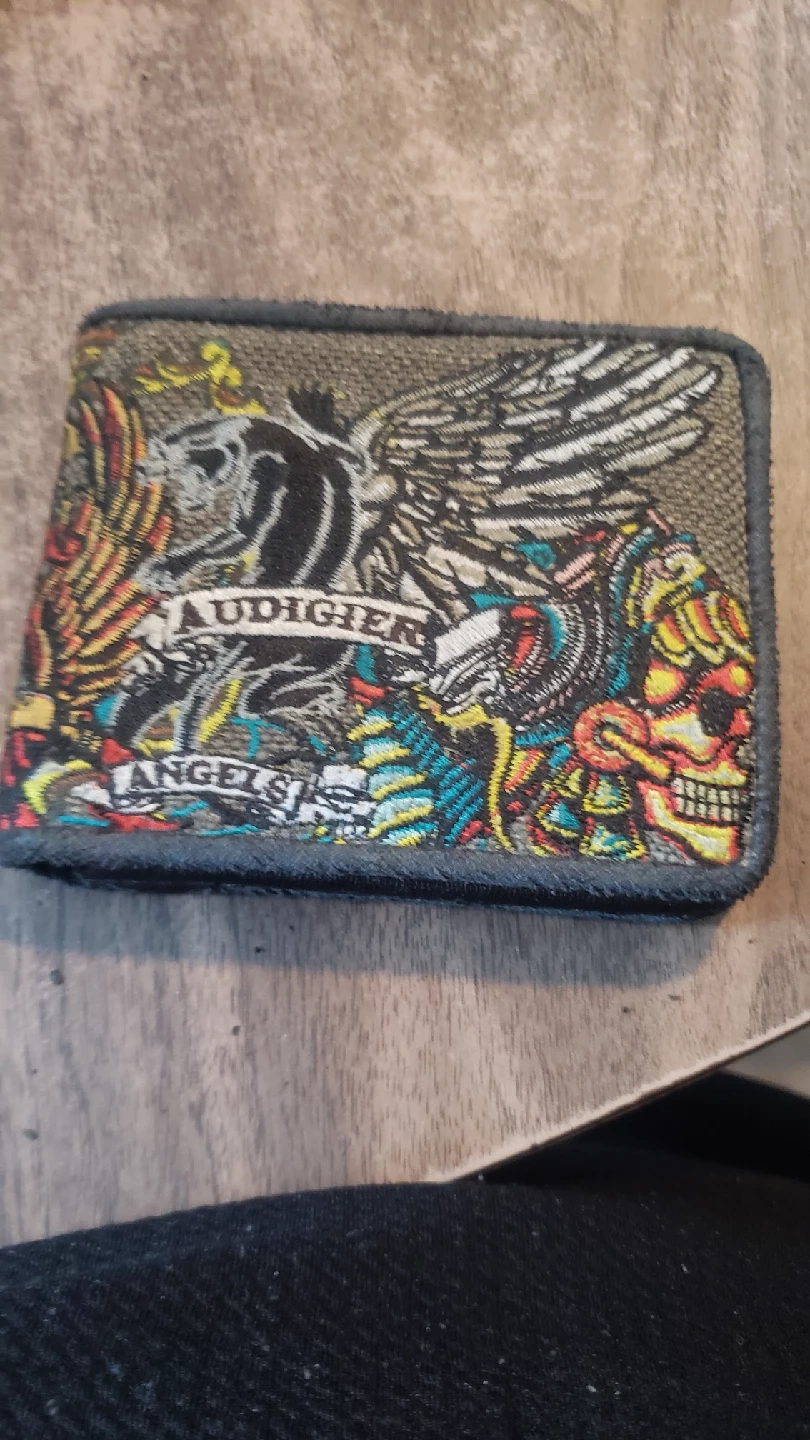 10Selling a vintage Christian Audigier wallet. It has a black interior with the brand's name printed on it. The exterior has a unique design with skulls and wings. It's in used condition but still has lots of life left! as is 25$ or best offer