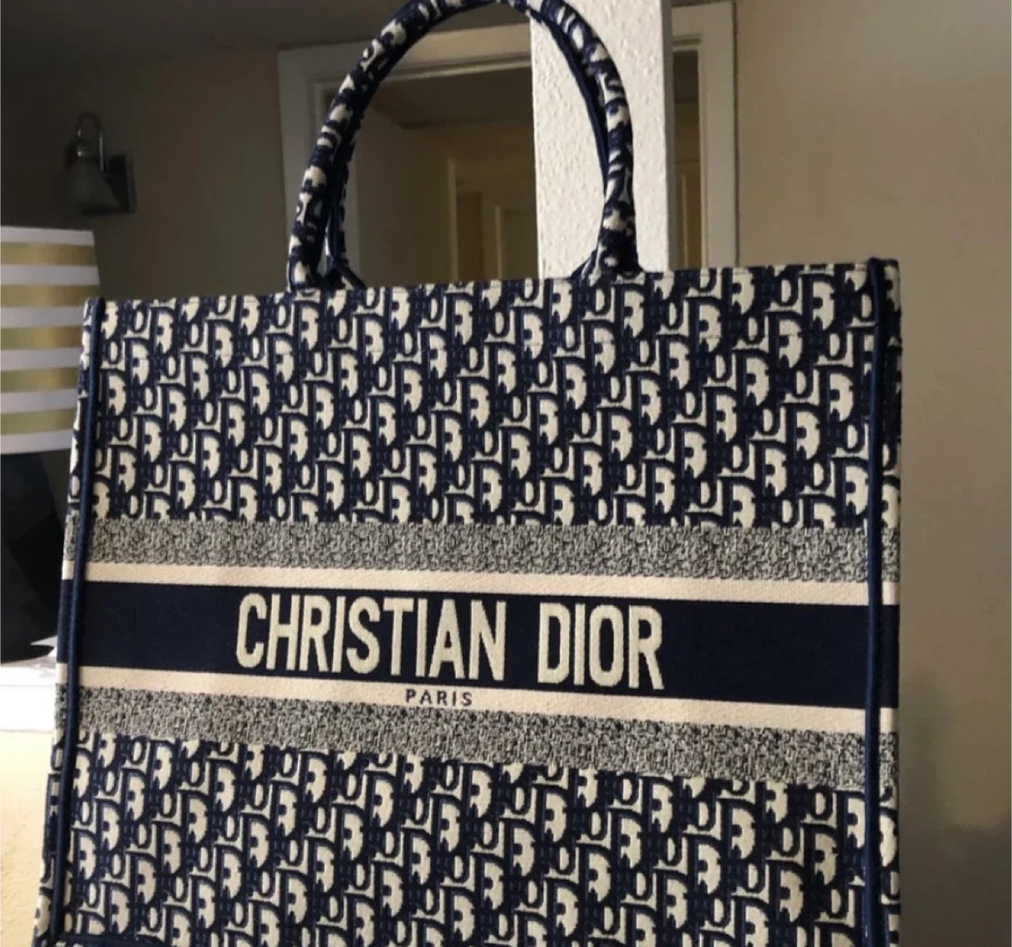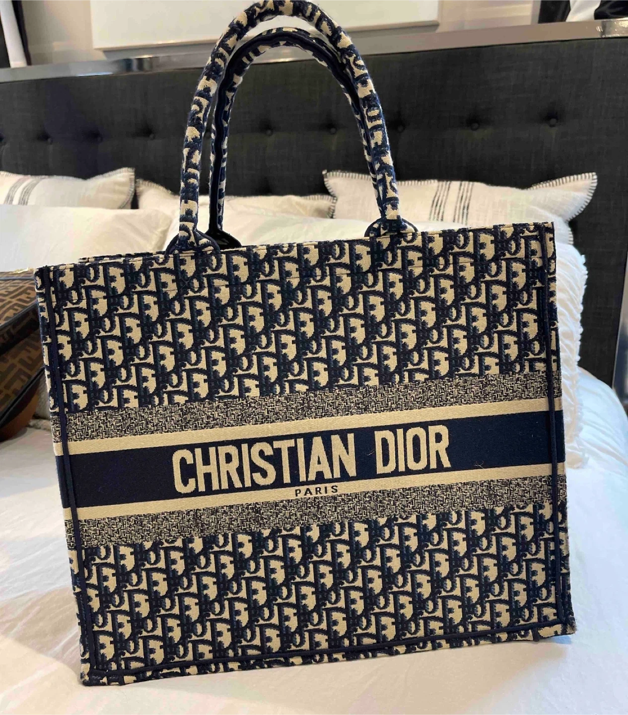 This is a Christian Dior Book Tote in blue. It's in great condition and has the classic Dior Oblique pattern. Brand new. Pickup in Oakville