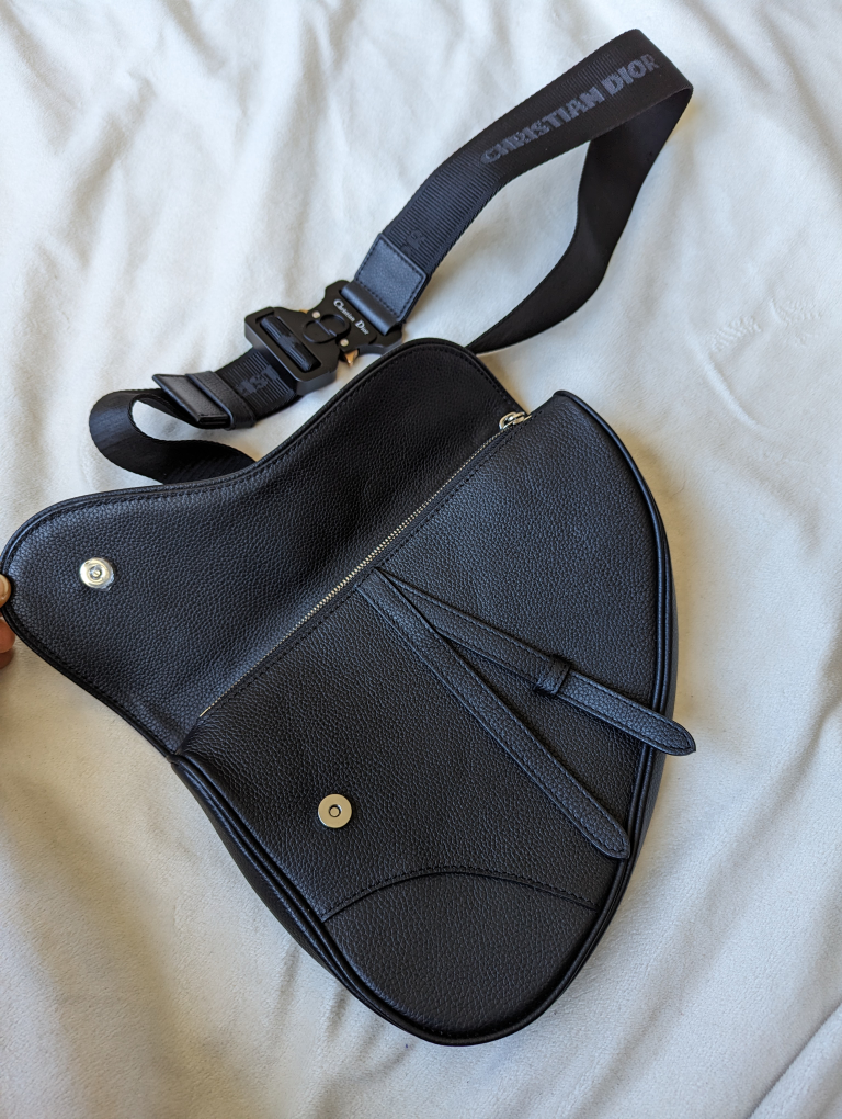 Dior men backpack black leather and single adjustable shoulder strap. It's a 2019 collection. Tonal hardware and Nylon lining. Snap closure at front. Serial number is 27-B0-1118 as shown in the picture and made in Italy. I am open to fair offers. kindly check out my other listings. pick up location Sherbourne and Dundas.