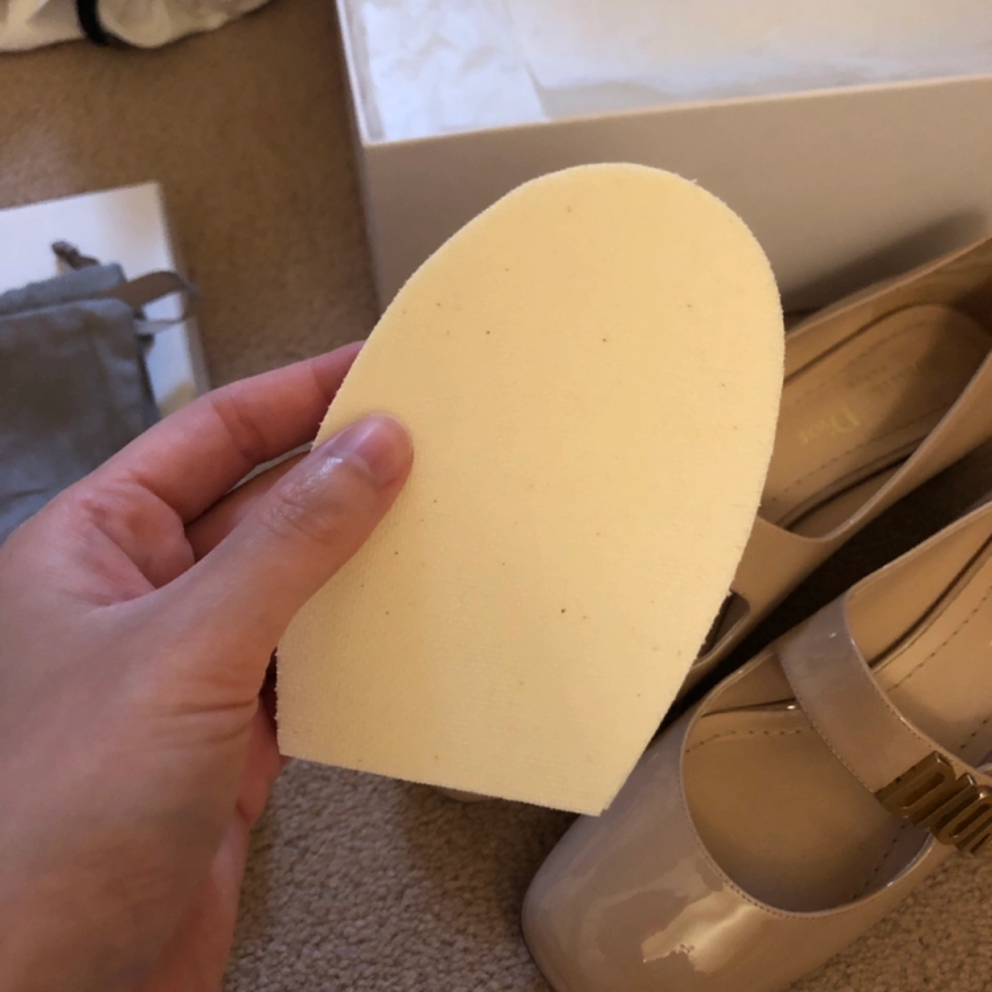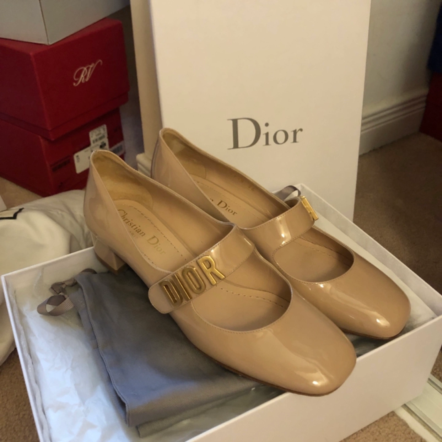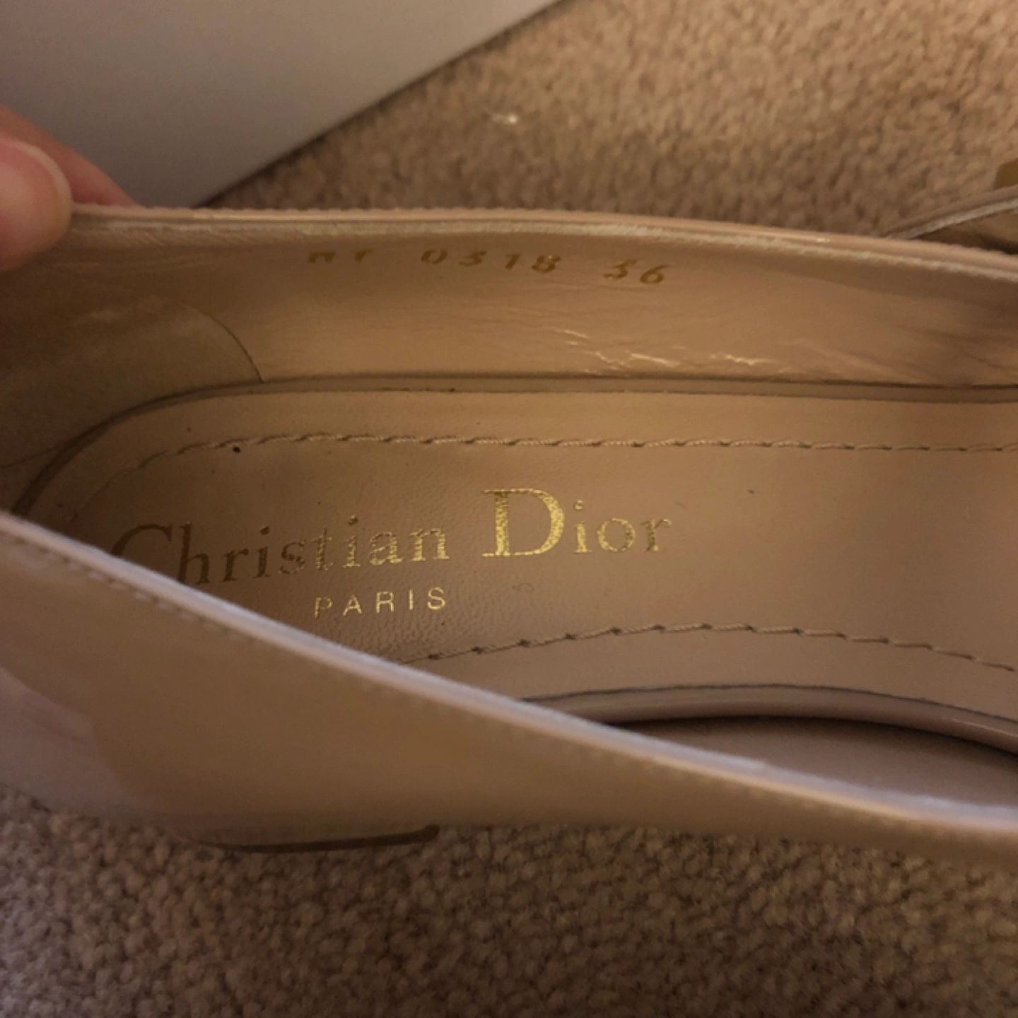 169Beige patent leather ballerina flats. Square toe. Gold Dior logo. Includes box and dust bag. Size 36. Authentic Condition: excellent Retail price is: $1300 after tax