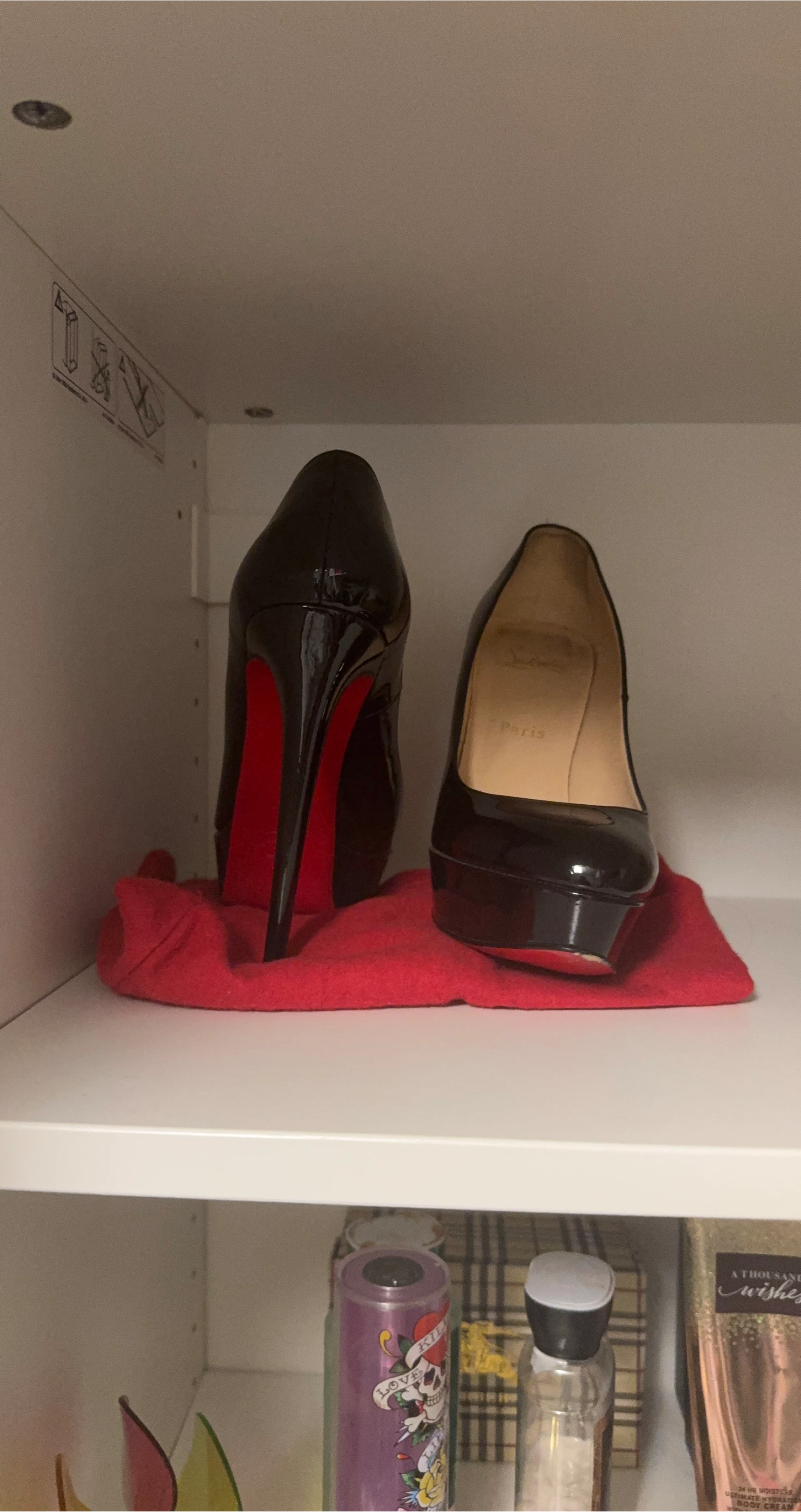 10Selling a pair of Christian Louboutin heels in black patent leather. They've been gently used and are still in great shape. The iconic red soles are definitely eye-catching!