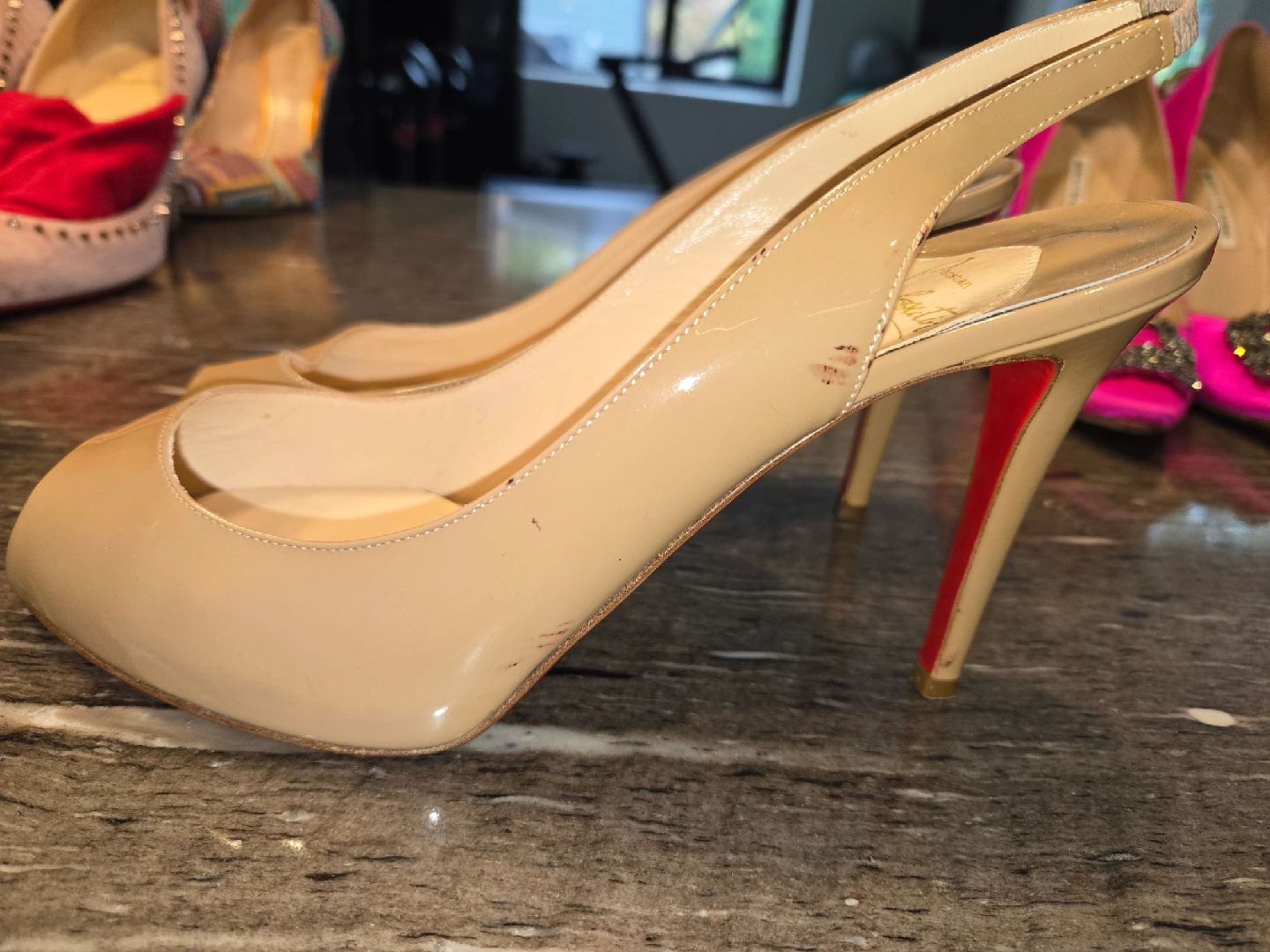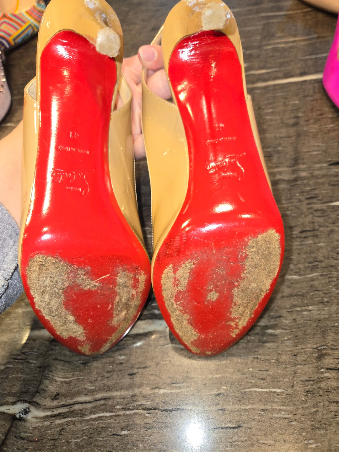 205Selling a pair of Christian Louboutin slingback heels. They are a size 41 and have the classic red sole. There are some signs of wear, as shown in the photos.