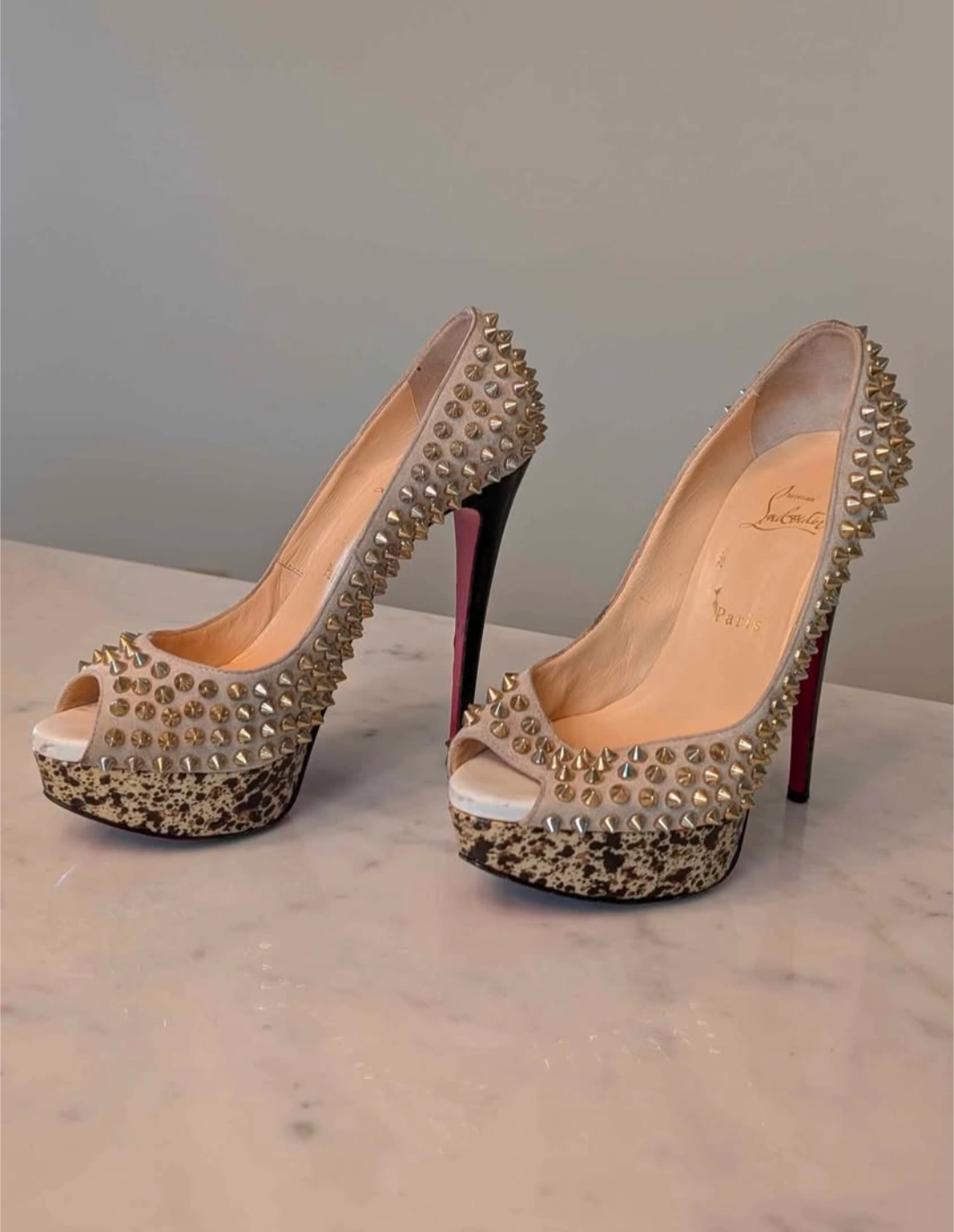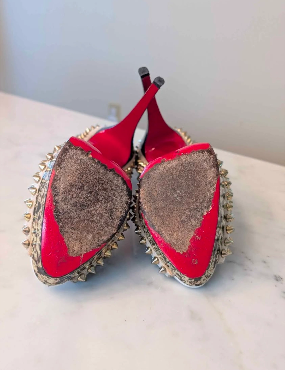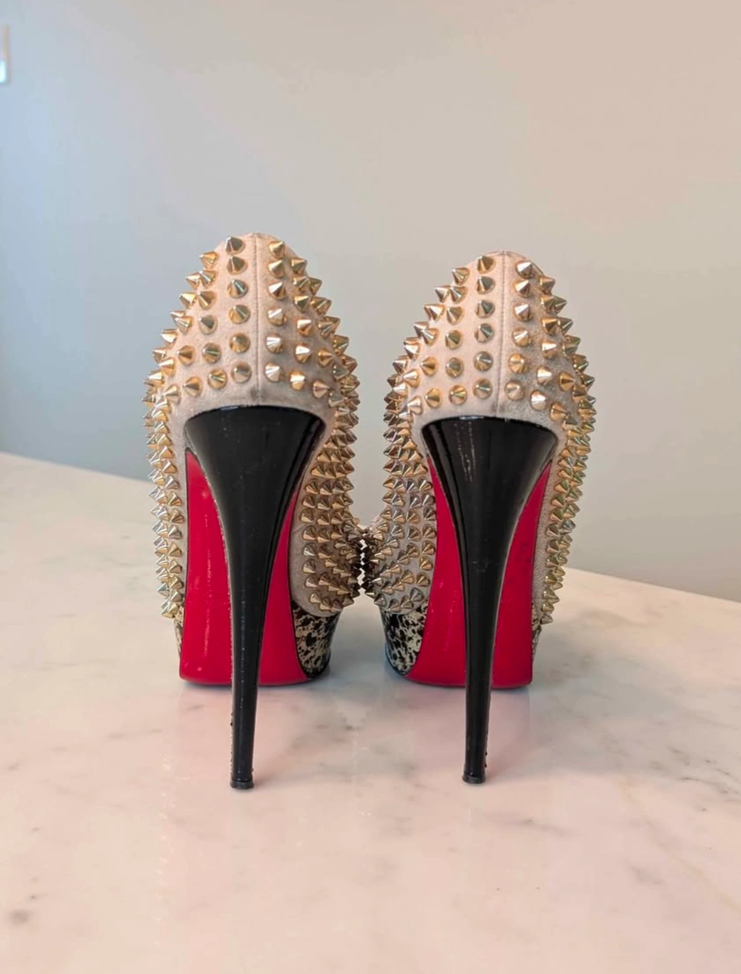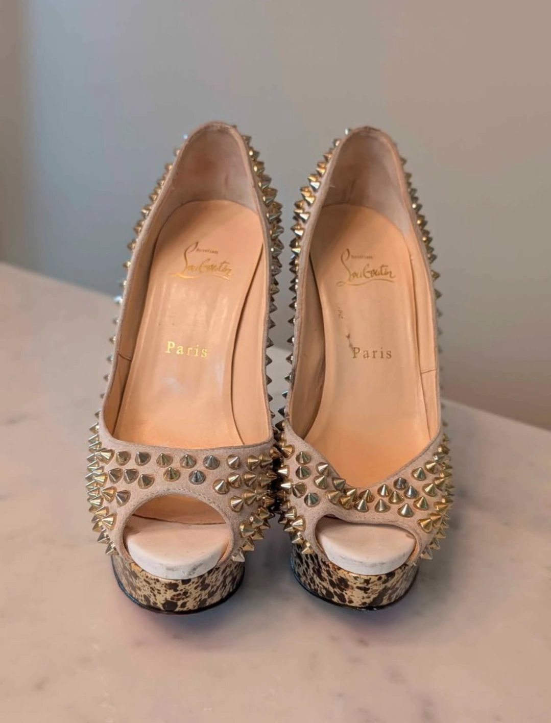 10Selling a pair of Christian Louboutin heels. Feature a unique studded design. The soles show signs of wear, but the overall look is still stunning! Selling cause it doesn't fit me anymore.