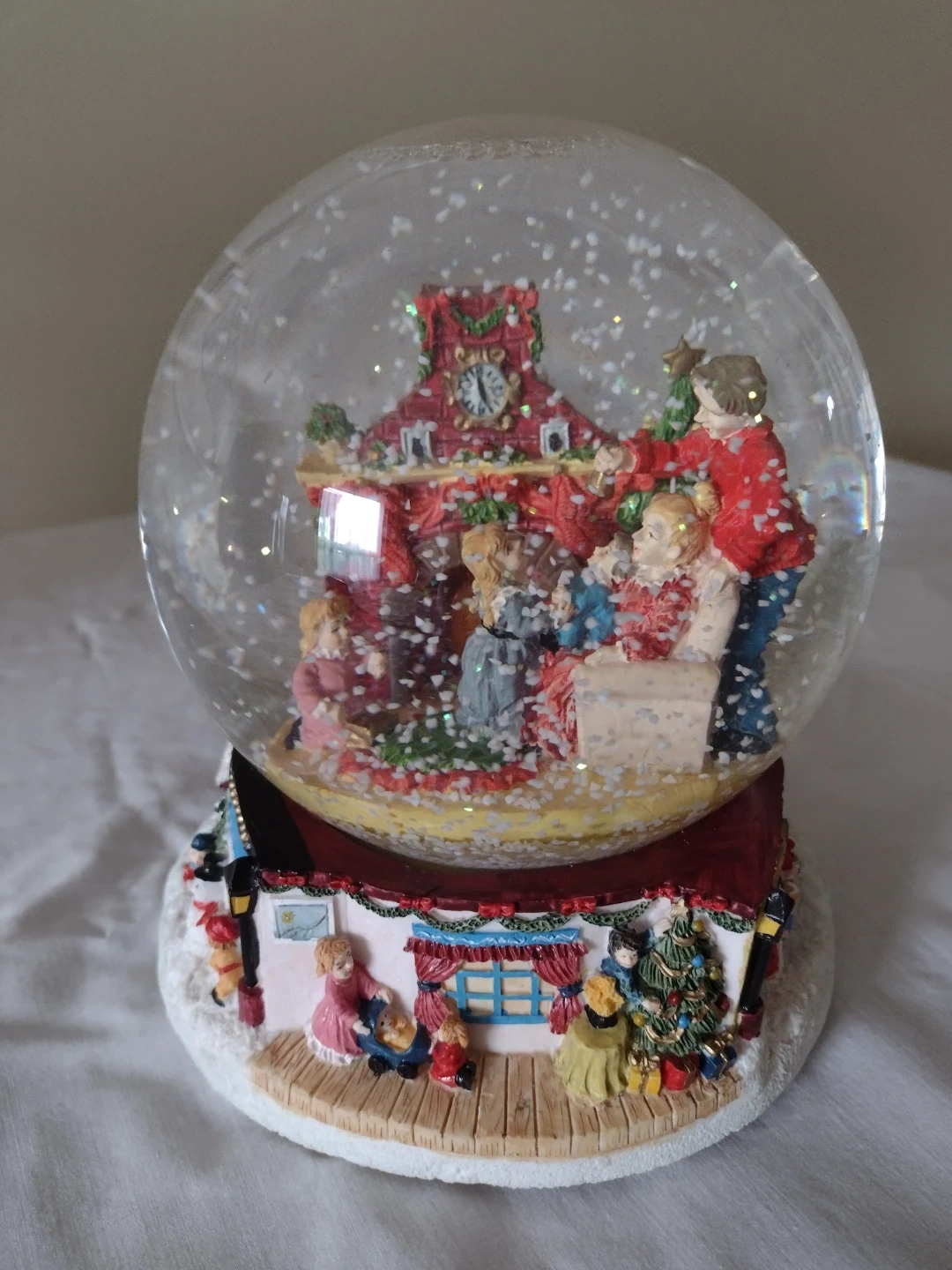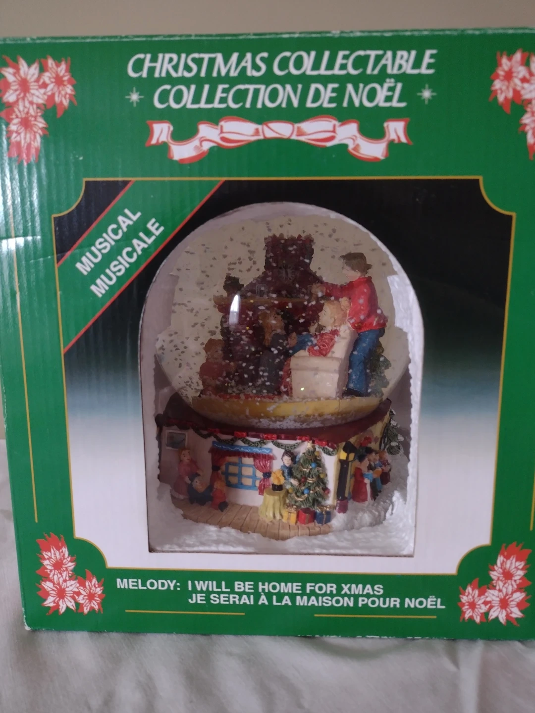 82A charming Christmas Collectable musical snow globe, perfect for adding a festive touch to your home! The snow globe features a delightful scene with a family gathered around a fireplace. It plays the melody "I Will Be Home For Christmas". Comes with the original box! Cash and Carry. PU Rossland and Wilson, Oshawa. First come first served basis.