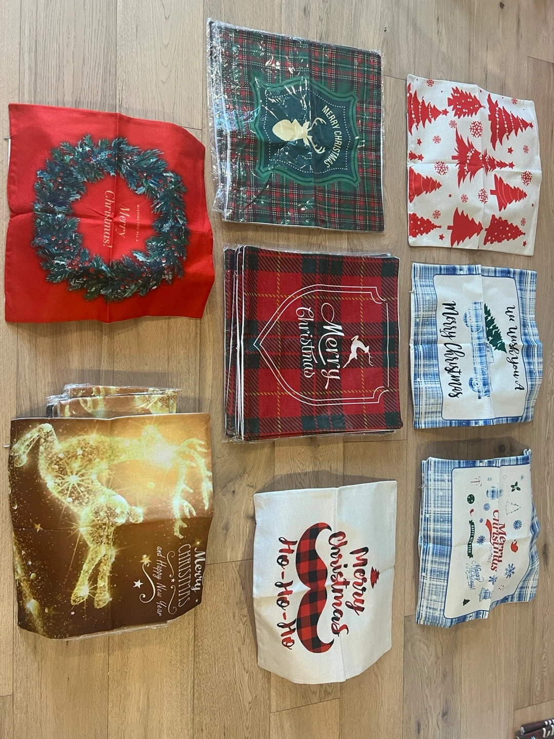 10It is holiday season !!! Christmas Cushion Covers (Pillow not included). $ 3 Each 2 For $ 5 Size 17 inch x 17 inch Pick up at Fonthill Delivery within range with fee