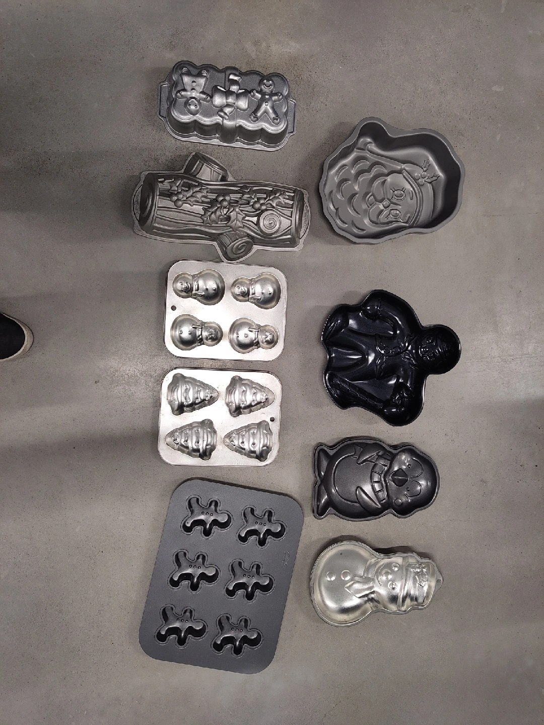 Getting ready for the holidays? I have a variety of Christmas-themed baking tins, molds, and serving dishes available. Perfect for making cookies and treats! Xmas baking -$40 for all $20 for the rest of the items