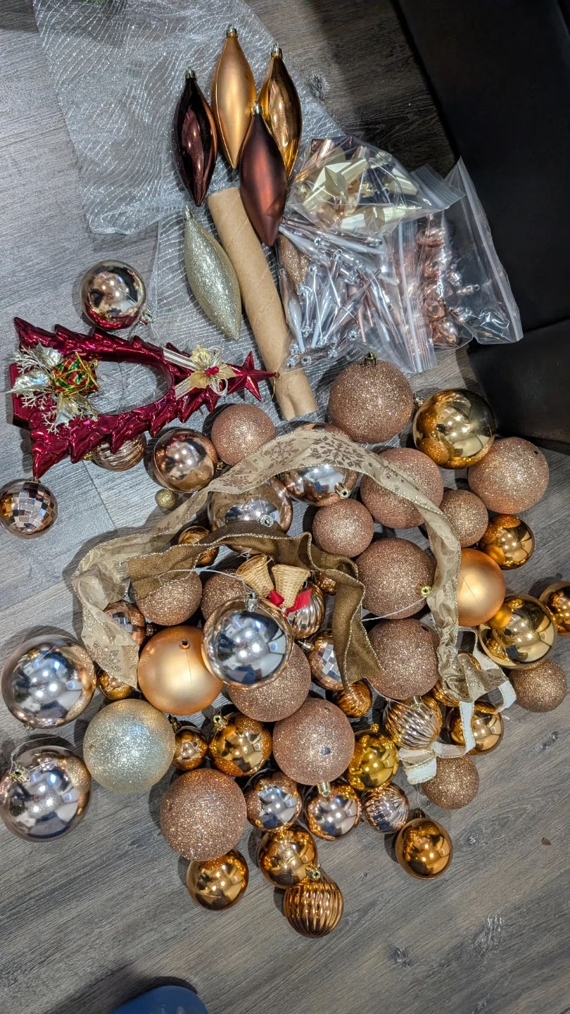 18Selling a large assortment of Christmas ornaments. There's a variety of shapes, sizes, and finishes, including shiny, glittery, and matte. Perfect for decorating your tree or adding some festive cheer to your home!