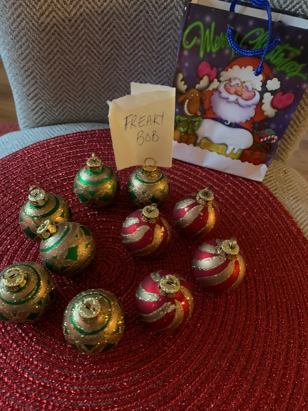 10Selling a set of 10 Christmas ornaments that are placed markers in good condition. There are two different styles: green and gold, and red and gold. Perfect for adding some festive cheer to your tree this holiday season!