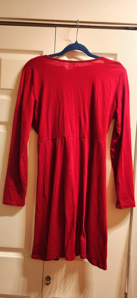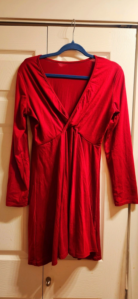 Cute Red Low Cut Shirt | Color: Red | Size: L Red long sleeve dress with a V-neck and a gathered waist. The dress is knee-length and made of a soft, stretchy material.