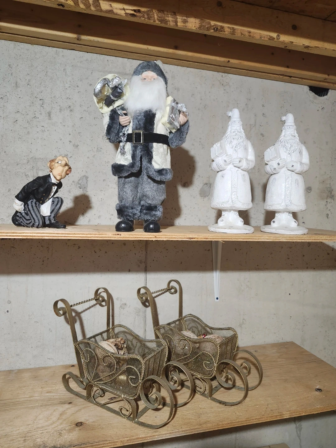 15A collection of Christmas figurines and decorative sleighs. Perfect for adding a festive touch to your home this holiday season!