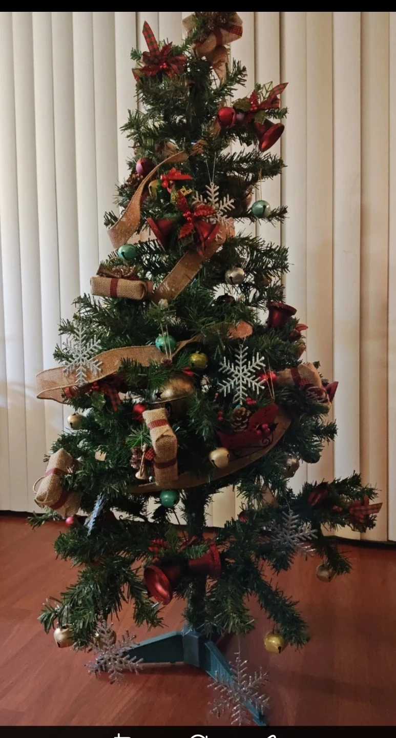 Christmas tree and decorations. It's in great shape and ready to bring some holiday cheer to your home. Comes with all the ornaments and decorations you see in the pictures. 4-4.5 feets
