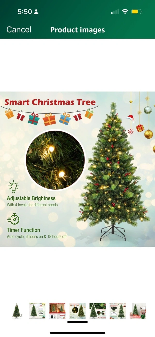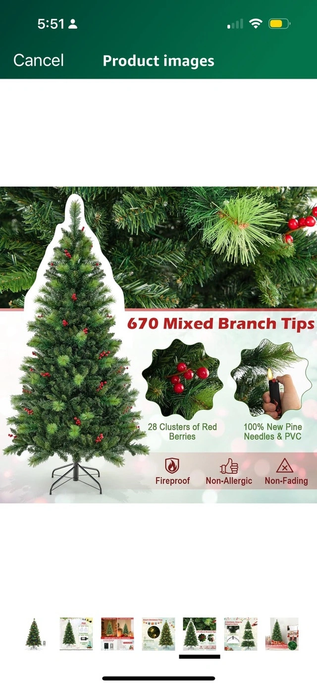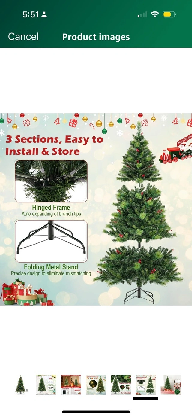 65Brighten your home this holiday season with this artificial Christmas tree featuring 670 mixed branch tips, 28 clusters of red berries, and 300 LED lights with 9 charming modes and adjustable brightness! It's designed in 3 sections for easy installation and storage. The tree is equipped with a hinged frame and a folding metal stand. * 670 Mixed Branch Tips * 28 Clusters of Red Berries * 300 LED Lights * 9 Charming Modes * Adjustable Brightness * Hinged Frame * Folding Metal Stand If the ad's still up, the tree's still here, ready to bring some festive cheer!