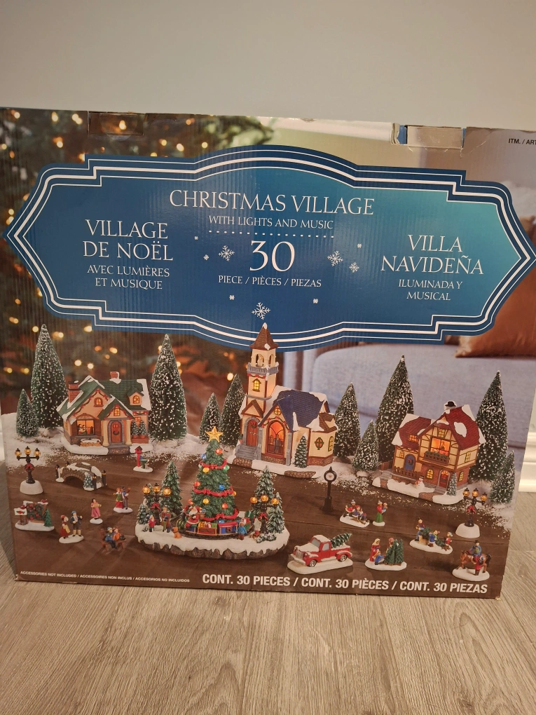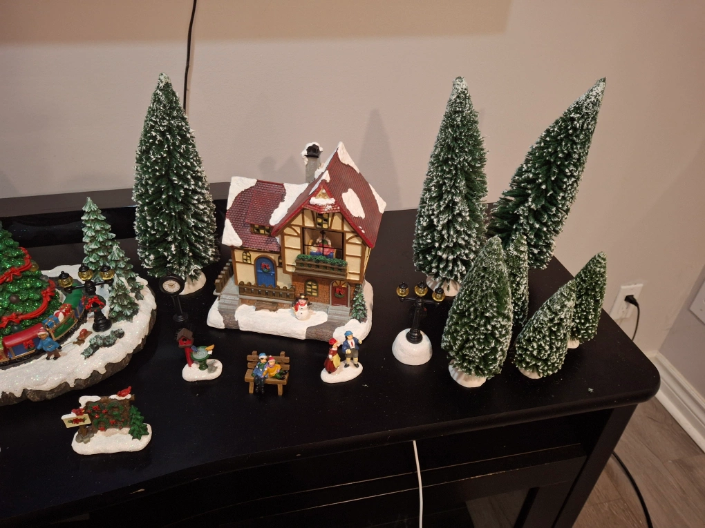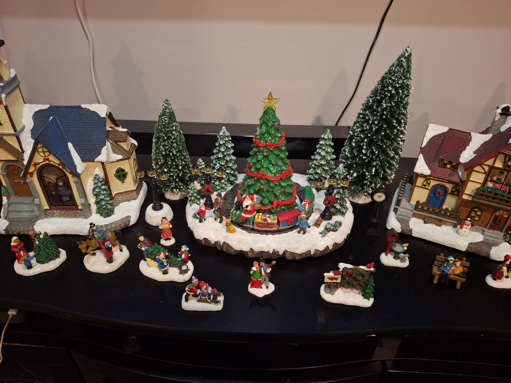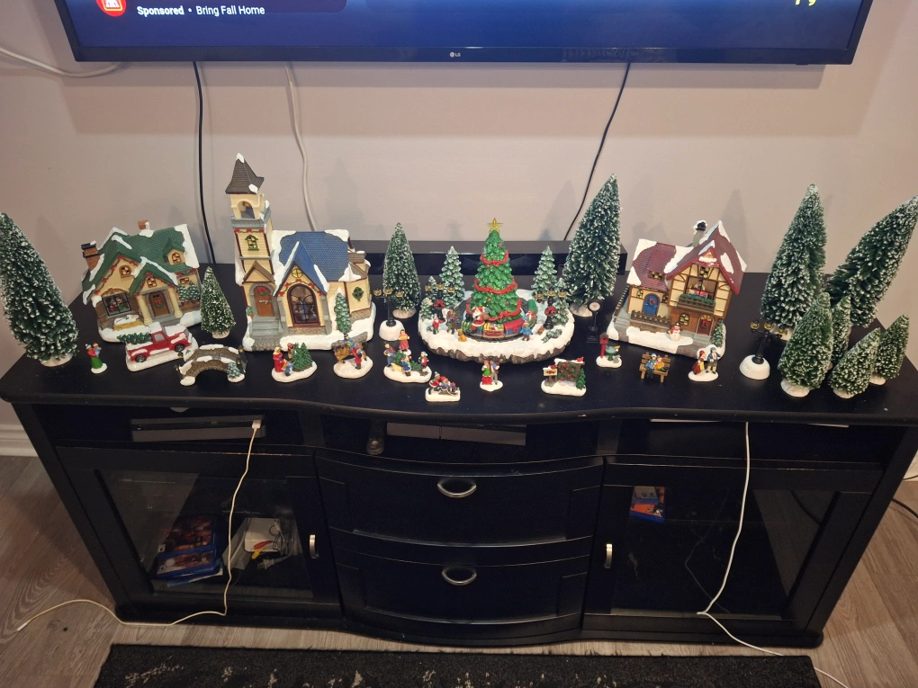 Christmas village, used one season. In new condition. Comes in original box with plastic bag covering per item. Some items light up and plays music. pickup Thornton and Rossland in Oshawa