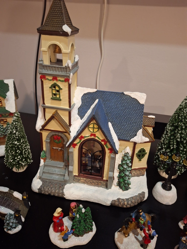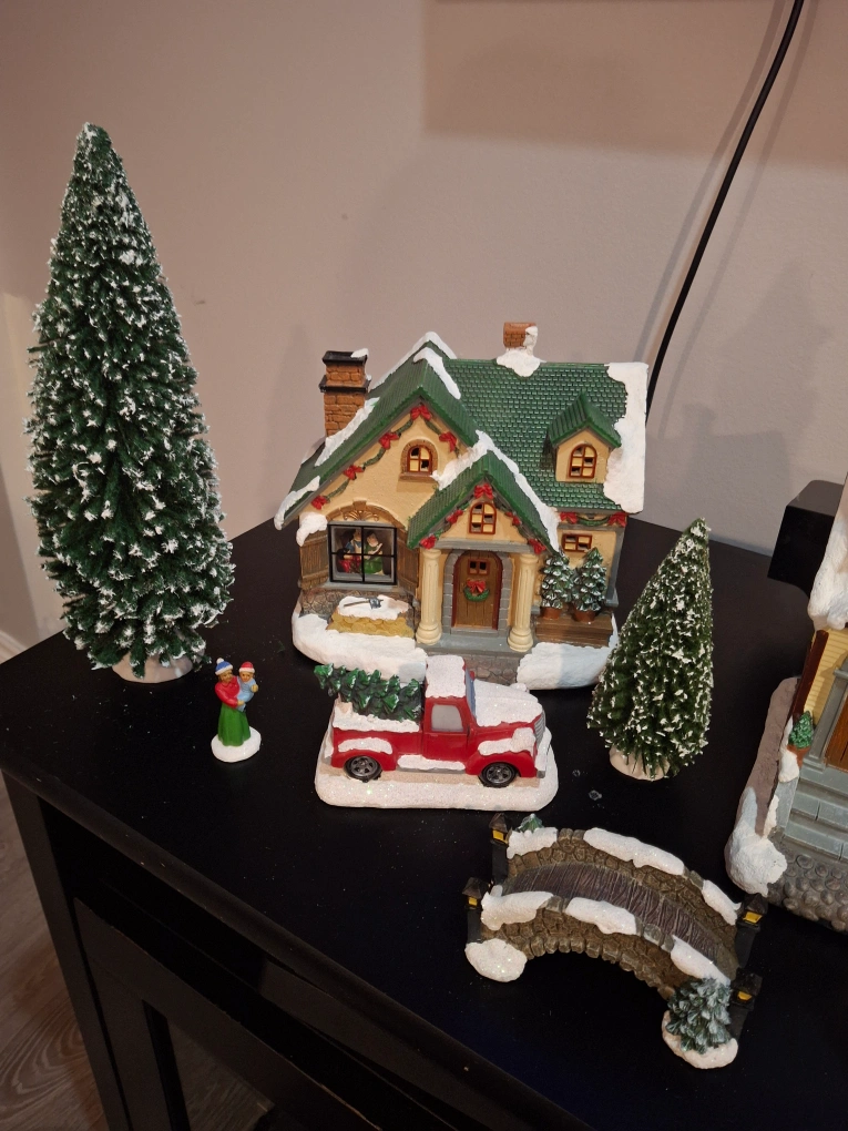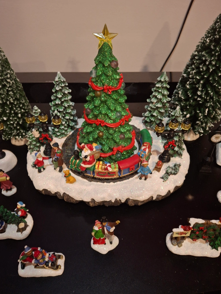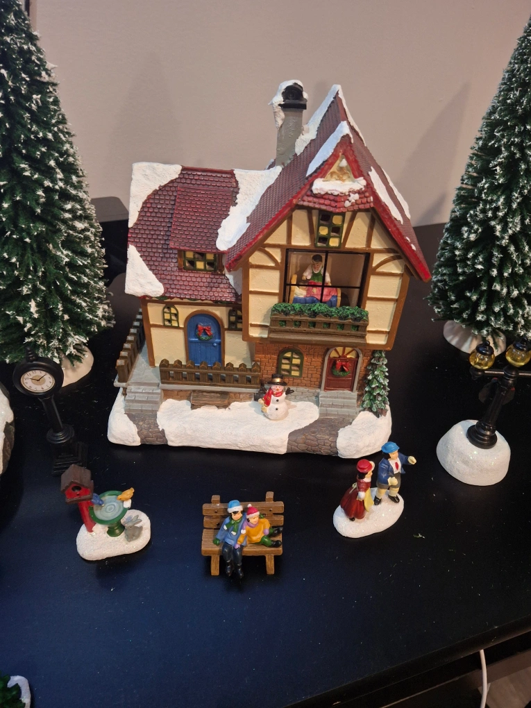 Christmas village, used one season. In new condition. Comes in original box with plastic bag covering per item. Some items light up and plays music. pickup Thornton and Rossland in Oshawa
