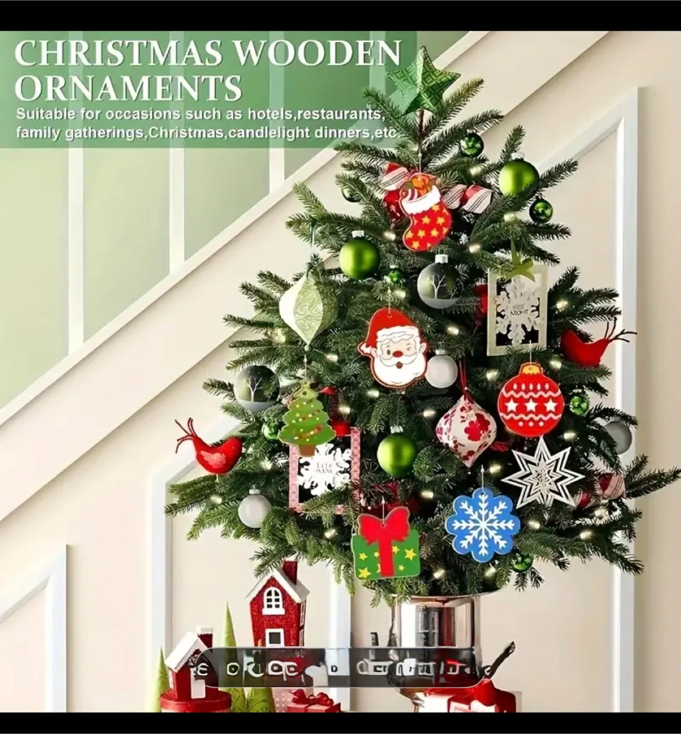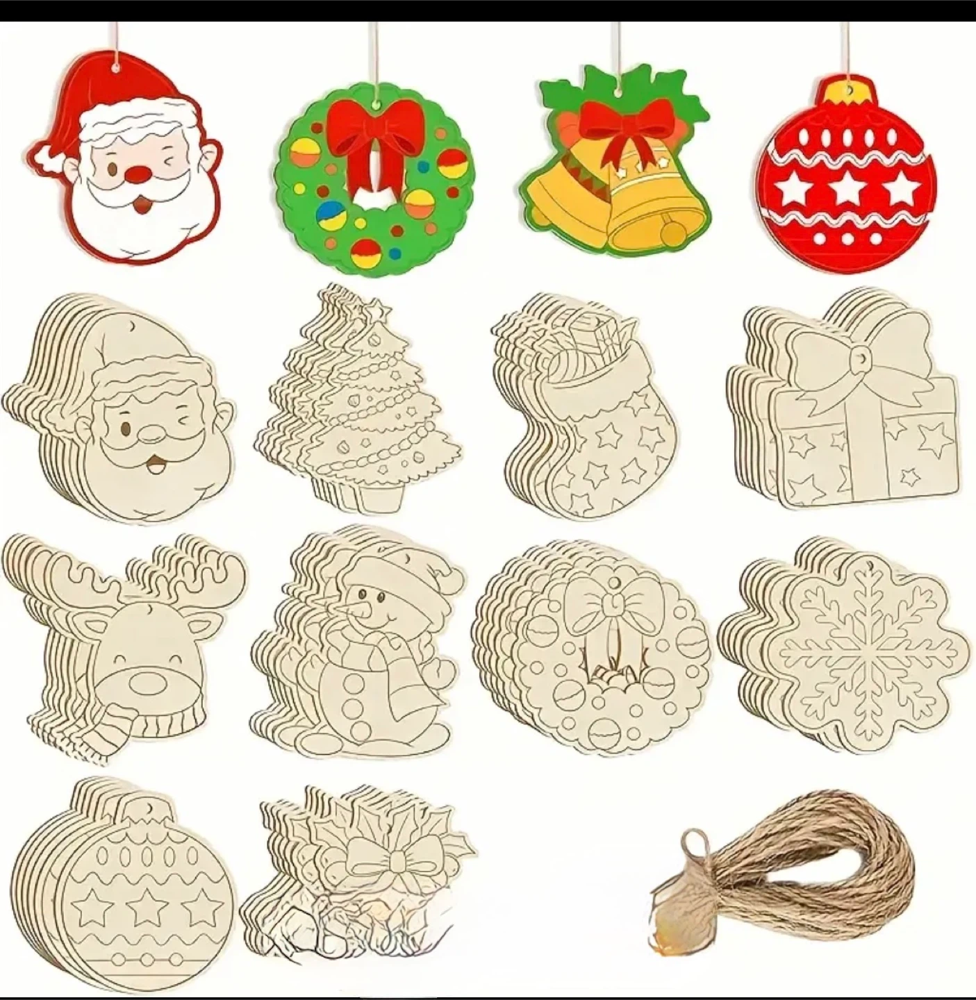 78Kids coloring activity and tree ornament! $5 for 5 Each $2 Get ready to deck the halls with this adorable set of Christmas wooden ornaments! Perfect for adding a touch of festive cheer to your tree, wreaths, or garlands. The set includes a variety of classic holiday shapes like Santa, snowmen, snowflakes, and more. Each ornament is crafted from wood and comes with hemp rope for easy hanging. They're the perfect size to add some holiday magic to your home and kids activity!