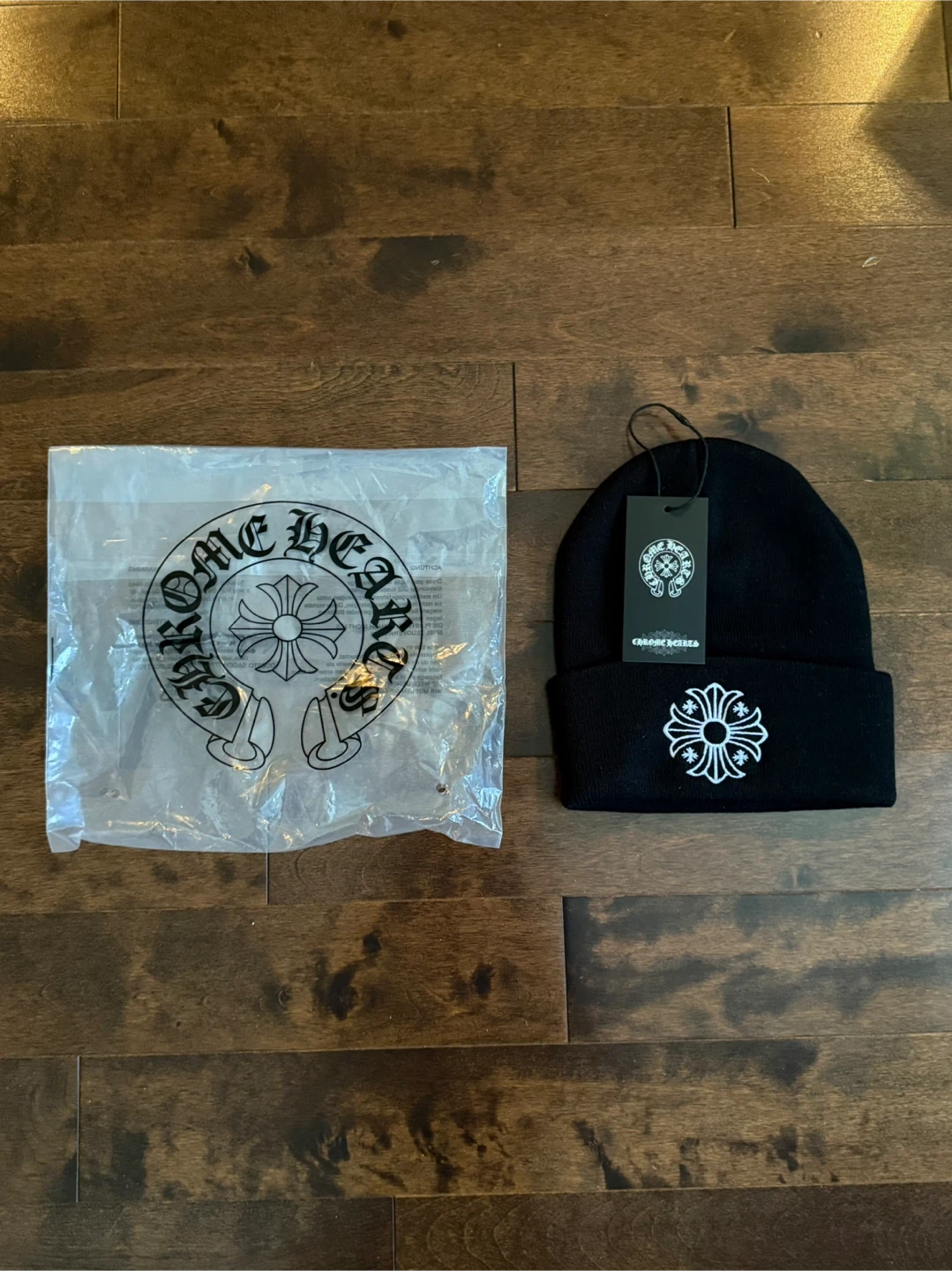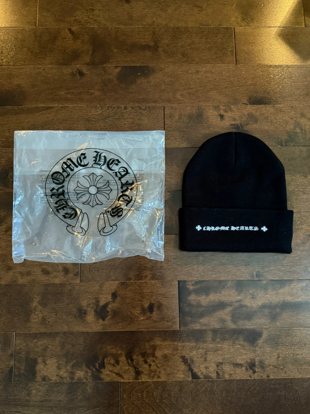 Selling a brand new Chrome Hearts black beanie! It comes with the original packaging. The beanie is black with the iconic Chrome Hearts logo embroidered on the front. Perfect for keeping warm in style!