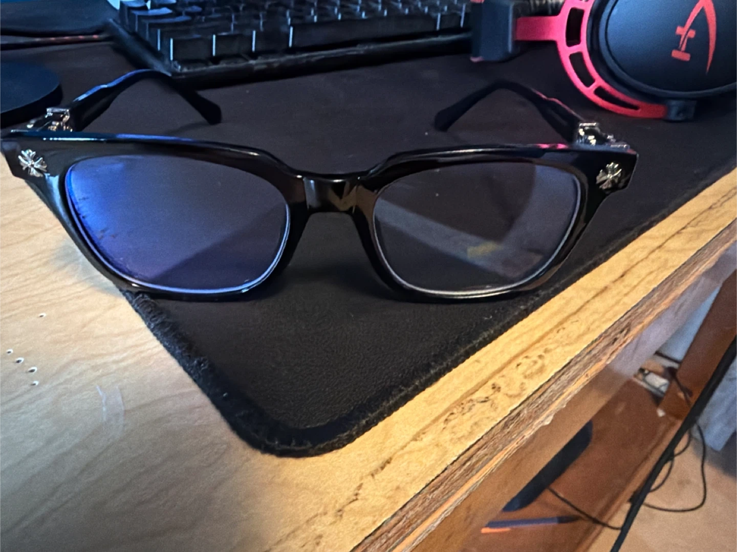 10Selling a pair of Chrome Hearts eyeglasses. They're in great shape and have a stylish black frame. The temples feature the iconic Chrome Hearts cross detail. Made in Italy.