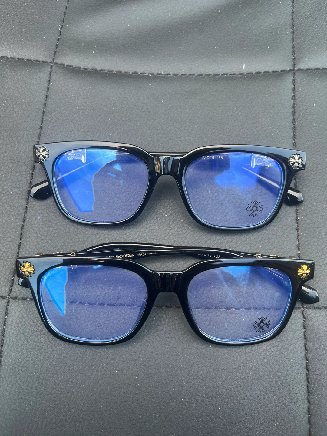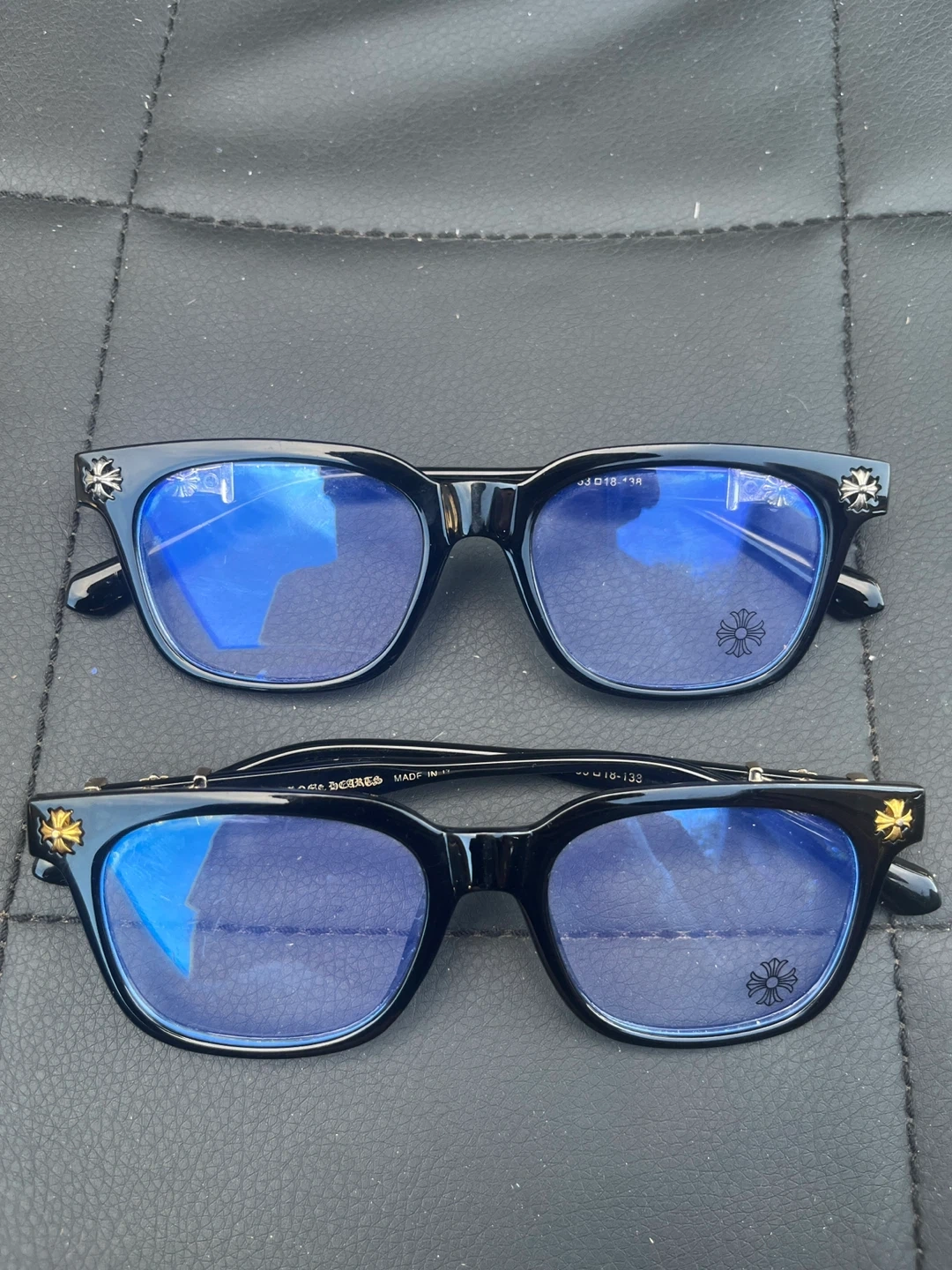 Selling a pair of Chrome Hearts glasses in black. They are in great condition and ready for a new home! They feature the iconic Chrome Hearts cross design.