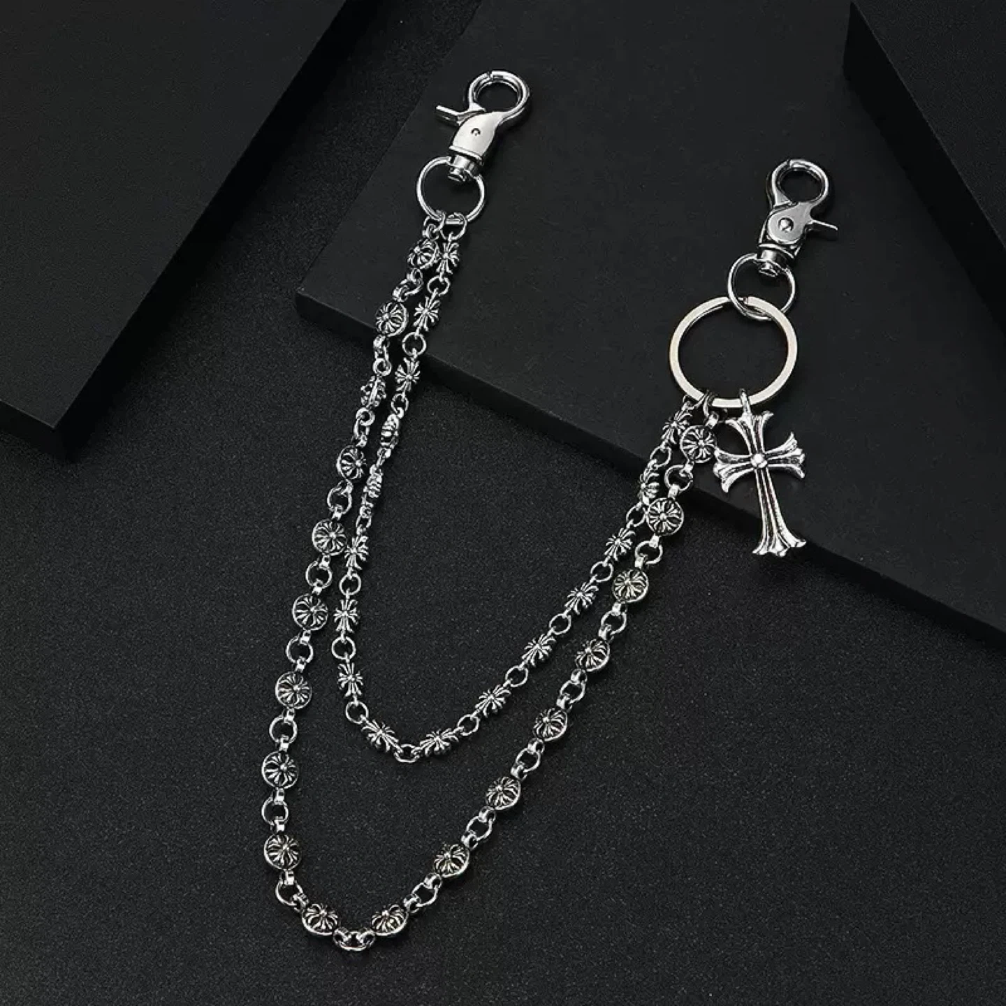 Selling a cool chain with a cross pendant! It's in great condition and has a unique design with flower-like details on the chain links