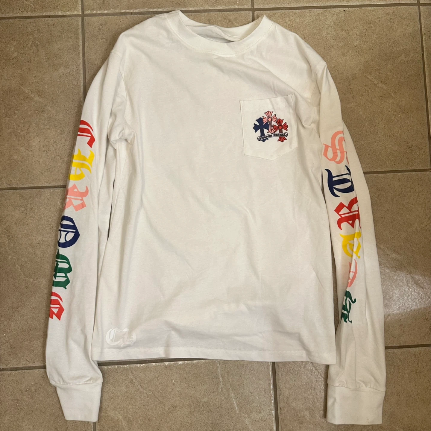10Selling a Chrome Hearts long sleeve shirt in white. Never worn size small, comes with bag, meet ups near me
